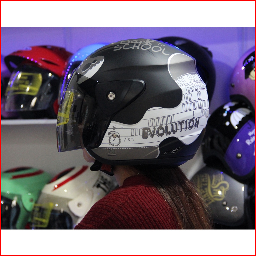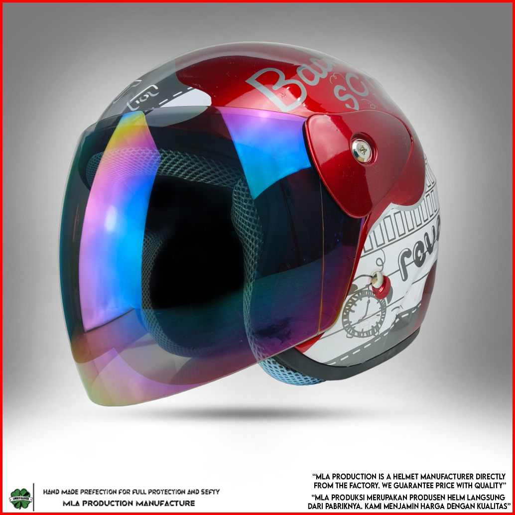 Helm Half Face Dewasa Evo Evolution Note Kaca Silver Pelangi - Helm Premium Untuk Wanita Dewasa Hijab Sni