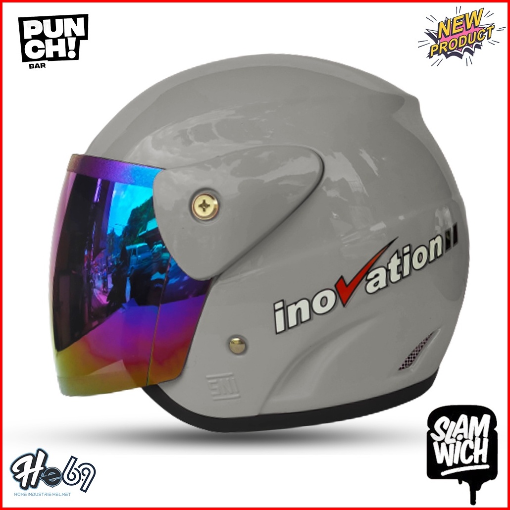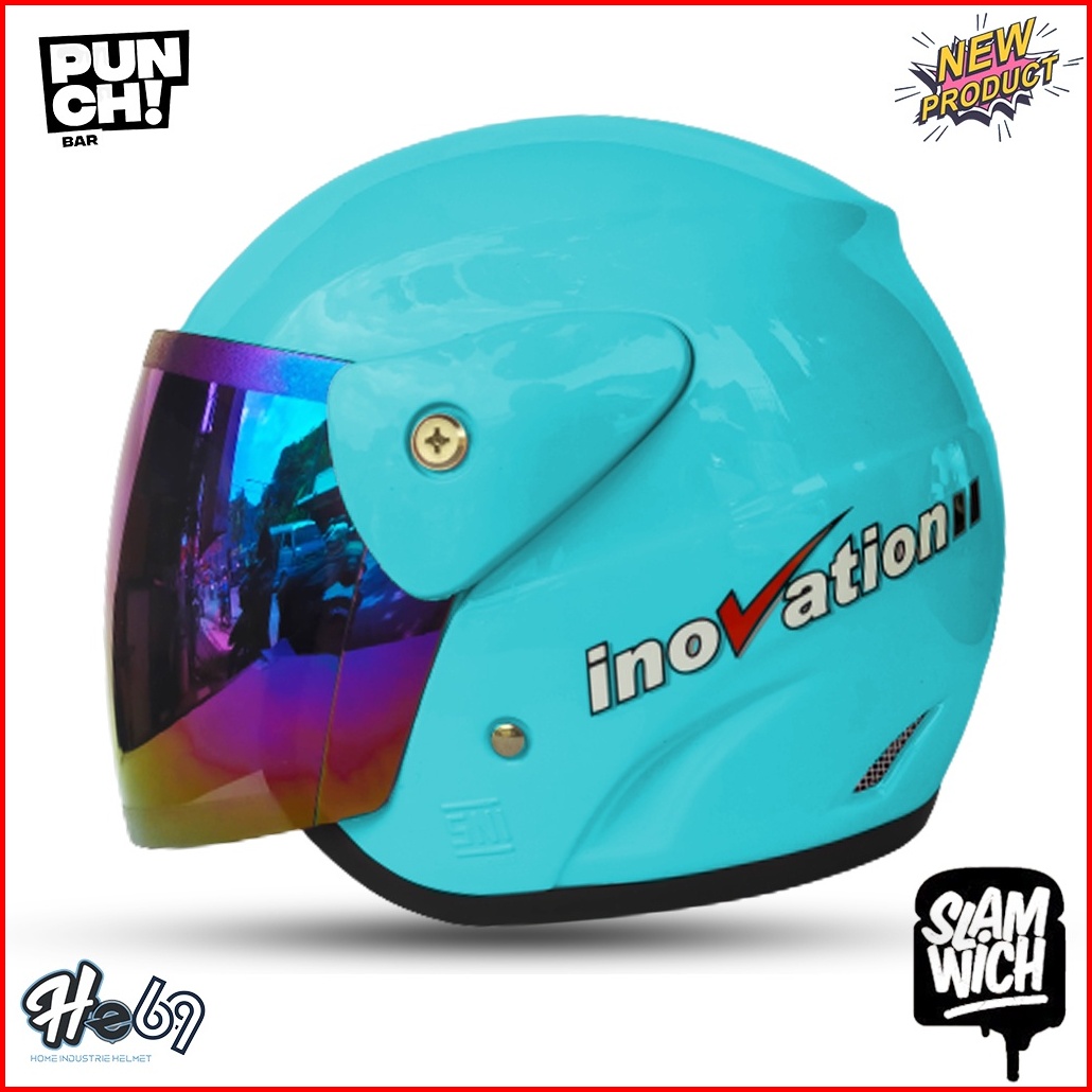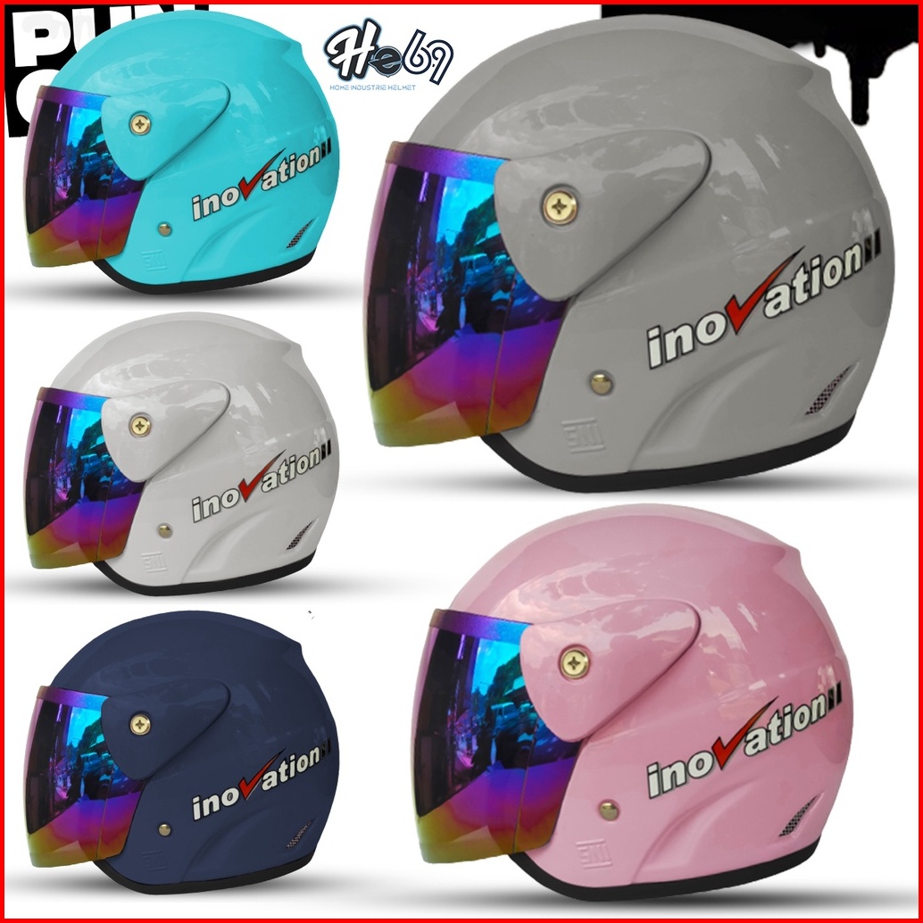 Helm Half Face Evolution Polos Kaca Silver Pelangi Untuk Pria Dan Wanita Dewasa