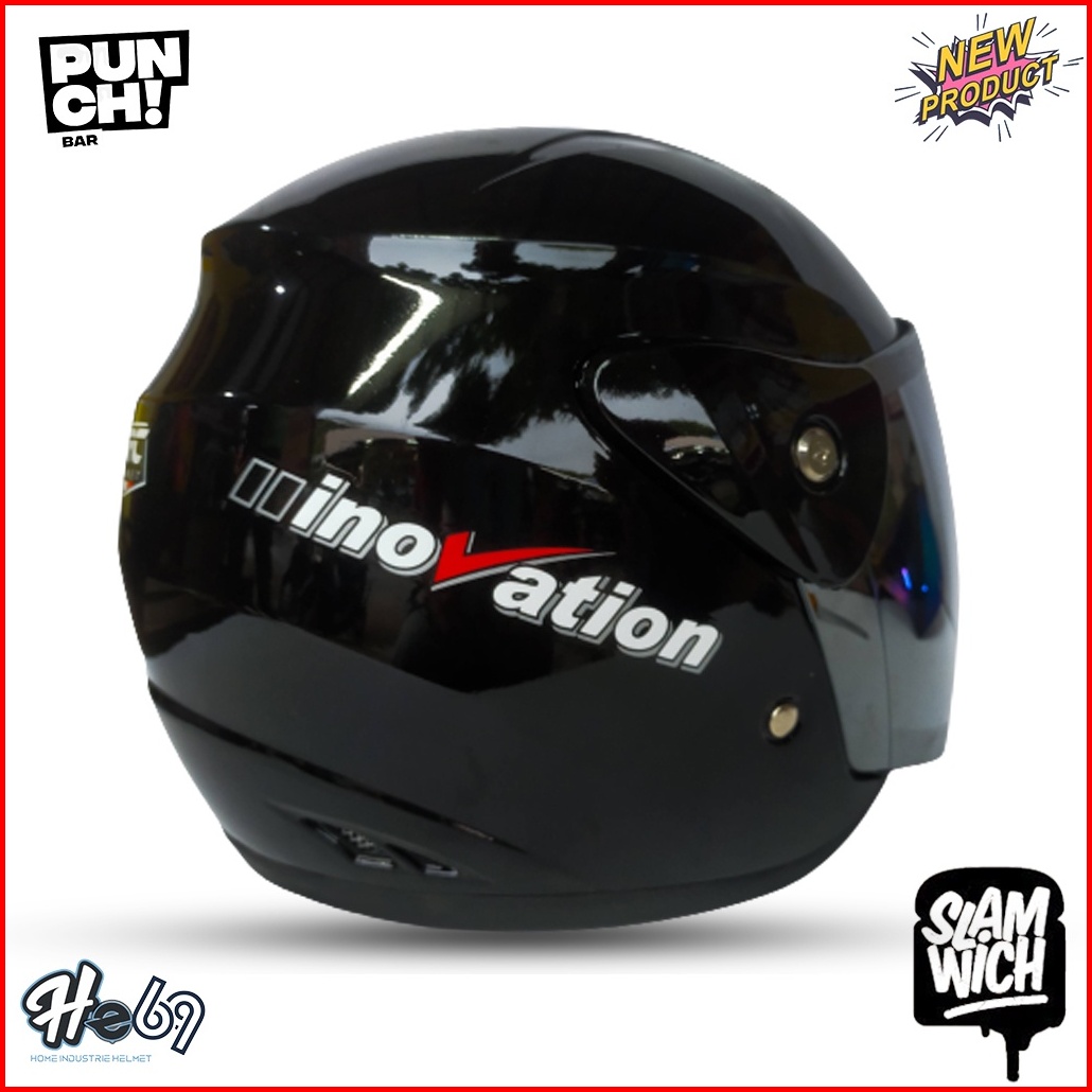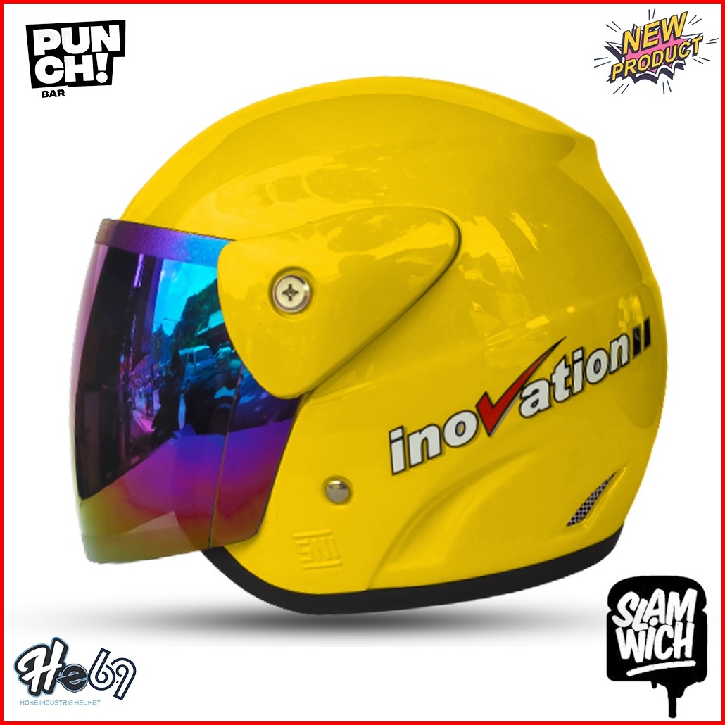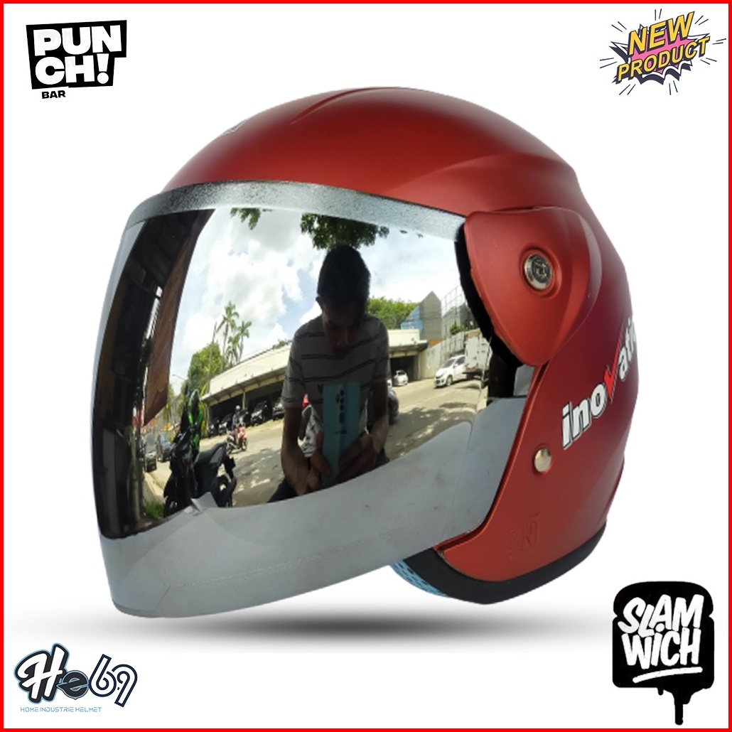 Helm Half Face Evolution Polos Kaca Silver Pelangi Untuk Pria Dan Wanita Dewasa