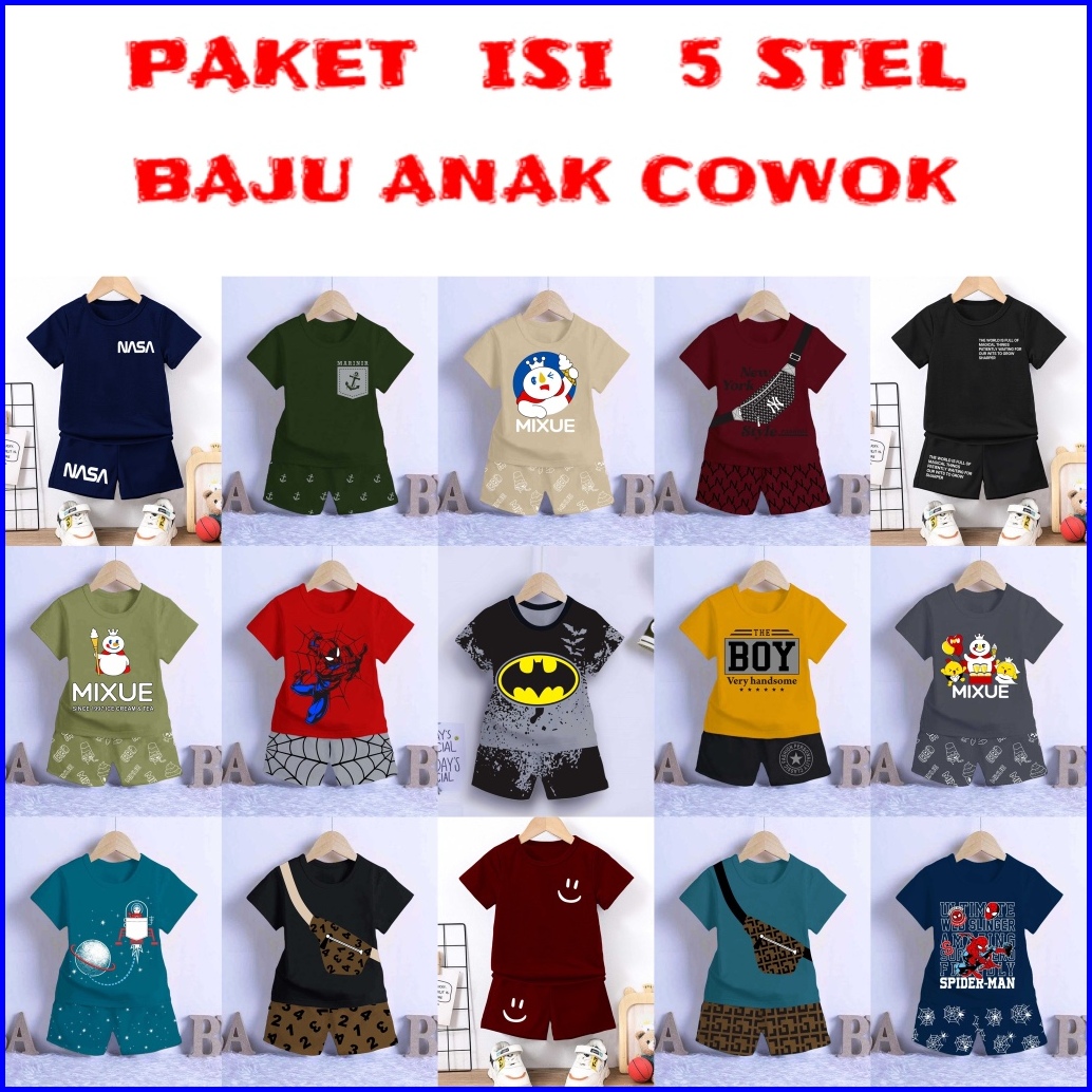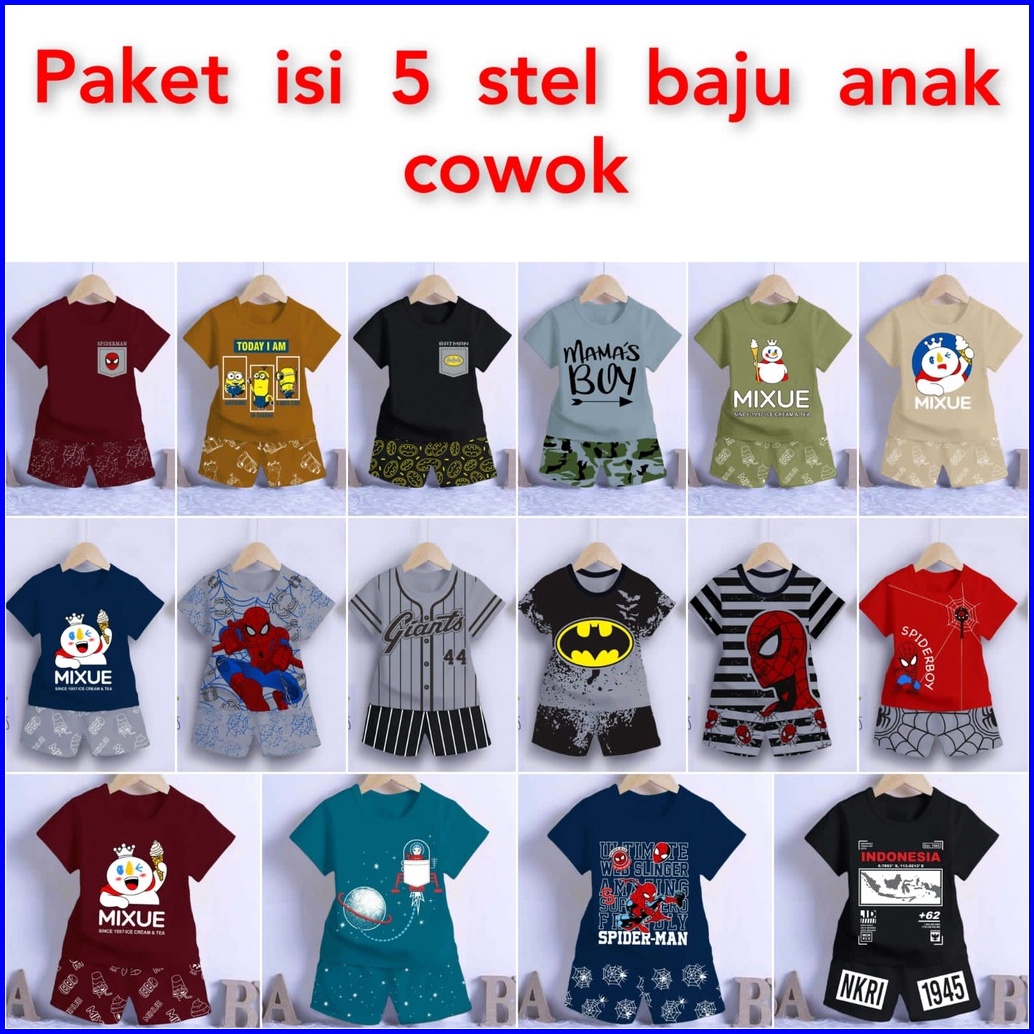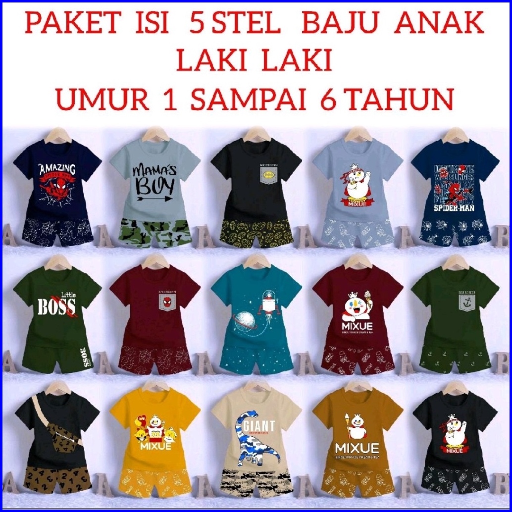 Paket Hemat 5 Pcs Setelan Baju Anak Laki Laki Campur Motif