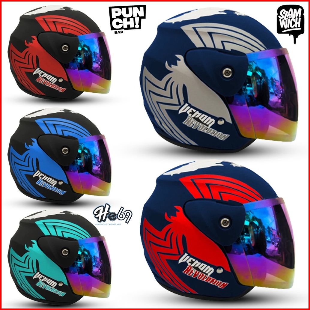 Helm Half Face Evo Evolution Venom Kaca Silver Pelangi - Helm Premium Untuk Pria Dan Wanita Dewasa Sni
