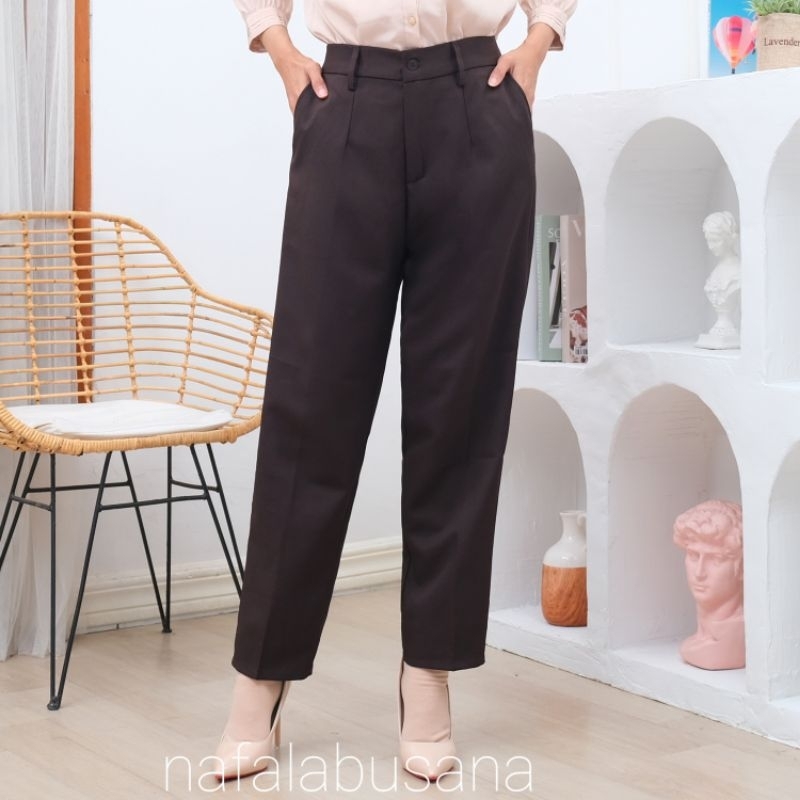 (Gratis Ongkir) Celana Kerja Wanita Highwaist Pinggang Karet Belakang Bahan Dasar Kain Kantor Formal