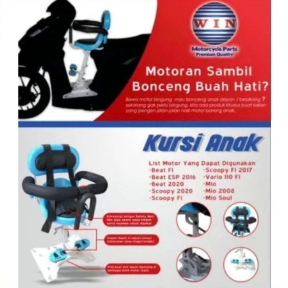 Kursi Jok Boncengan Anak Depan Motor Matic Beat Vario Scoopy Mio Warna Merah Biru Putih Merk Win