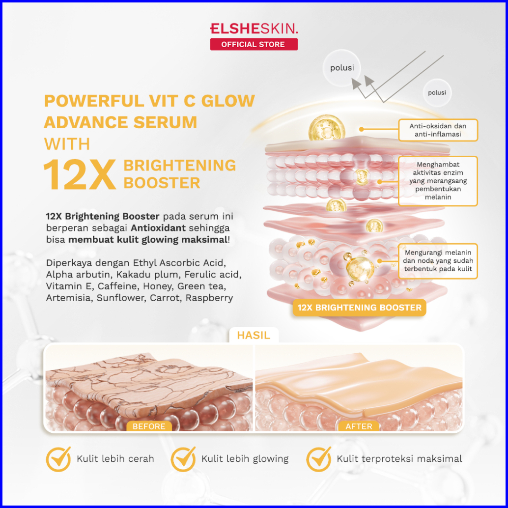 New Launch Elsheskin 15 Vitamin C Glow Advance Serum 20ml - Brightening Skincare Serum Wajah Tampak Lebih Cerah Dan Glow
