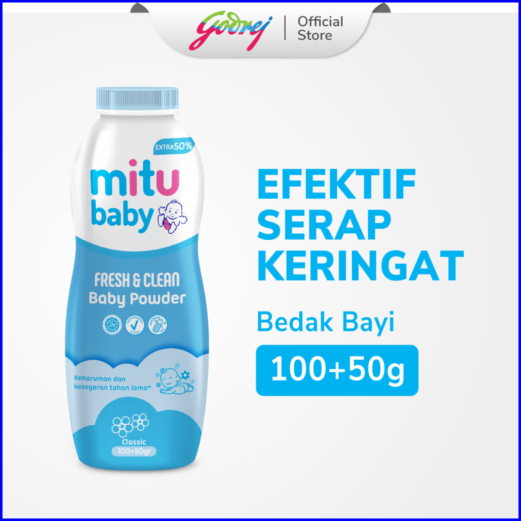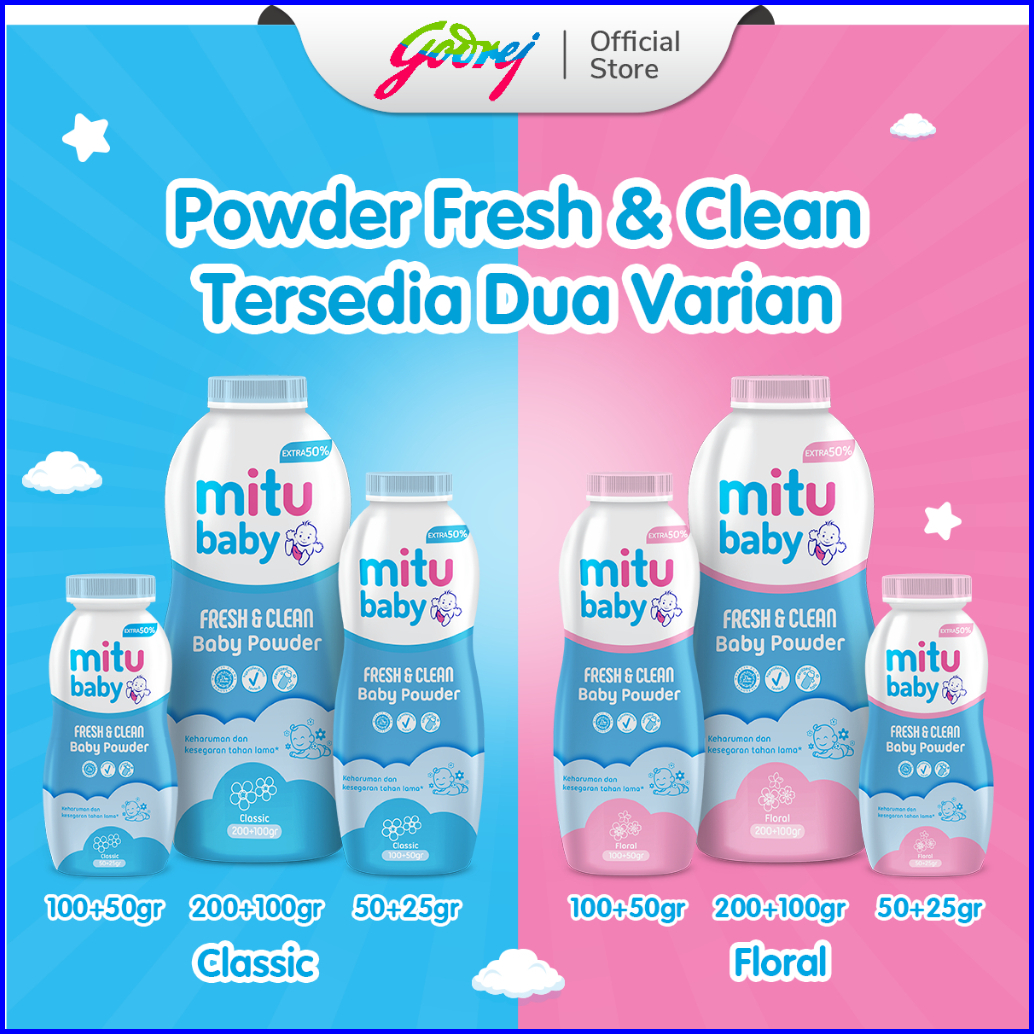 Mitu Baby Powder Fresh Clean Blue Classic 100 50 Gr - Bedak Bayi