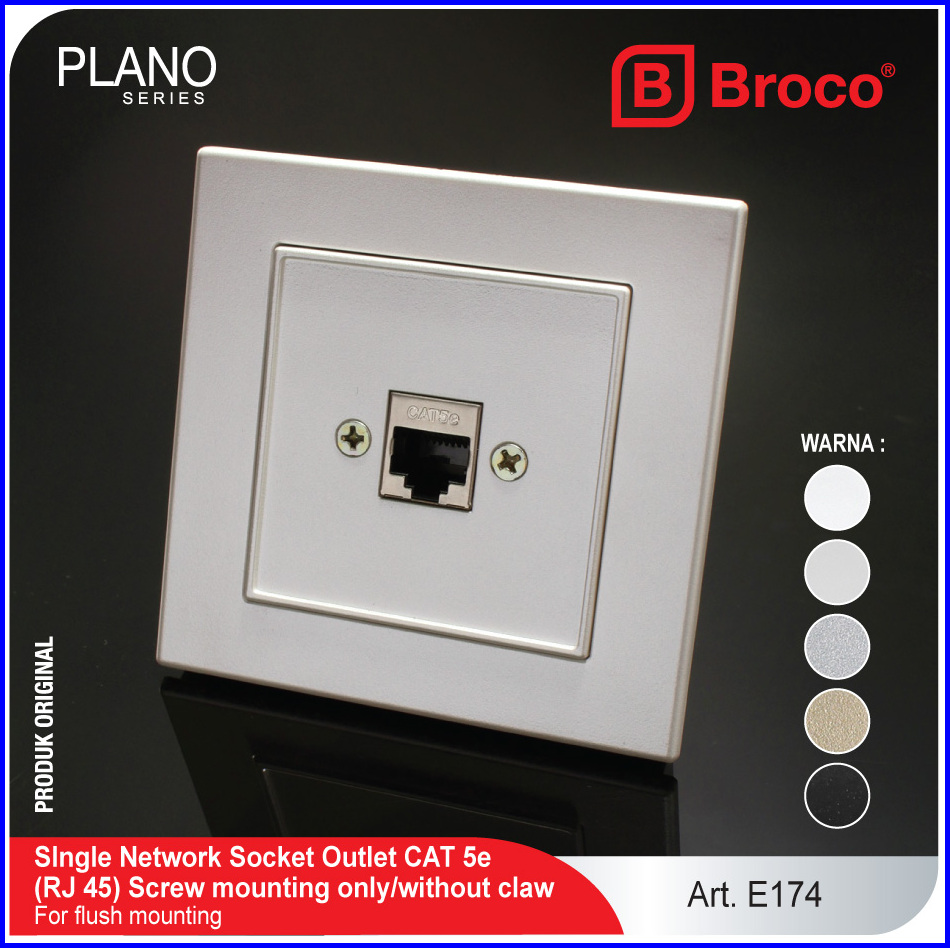 Broco Electrical Plano E174 B Single Network Socket Outlets Cat.5 Rj45