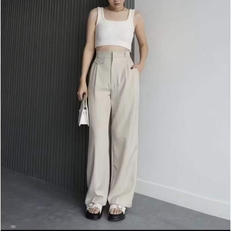 ORO PANTS Highwaist Loose Pants Trousers - Celana Anti Kusut Premium