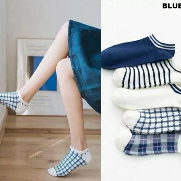 Terlaris Paket 5 Pasang Kaos Kaki Wanita Pendek Ankle Sock Mata Kaki Colorful - Green Avocado Promo