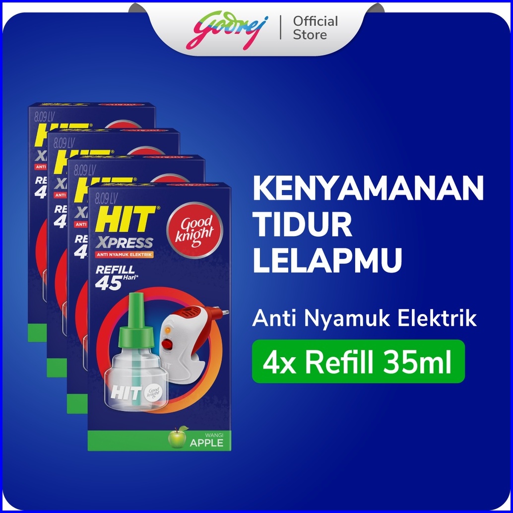 Hit Good Knight Xpress Refill Apple 45 Hari X4- Refill Obat Nyamuk Elektrik - Bunuh Nyamuk Penyebab Demam Berdarah Dbd