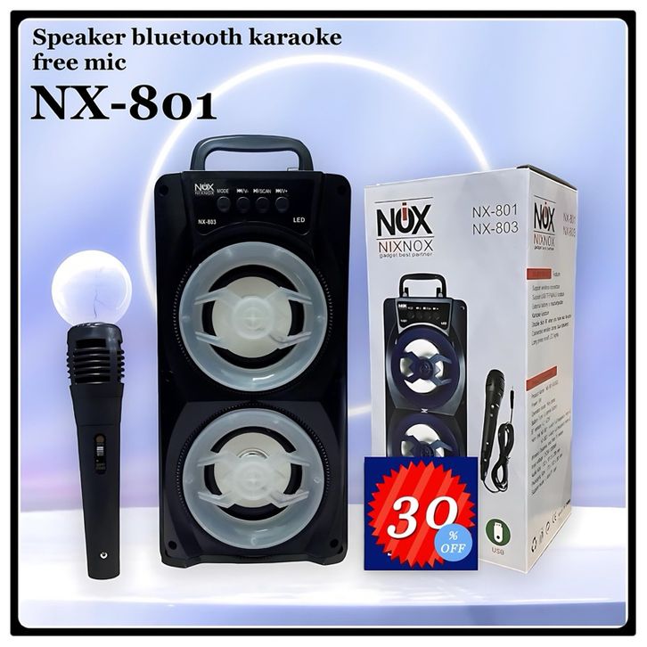 speaker bluetooth nixnox original portabel karaoke free mic PJ 801/802 speaker aktif Salon aktif bluetooth full bass 30%