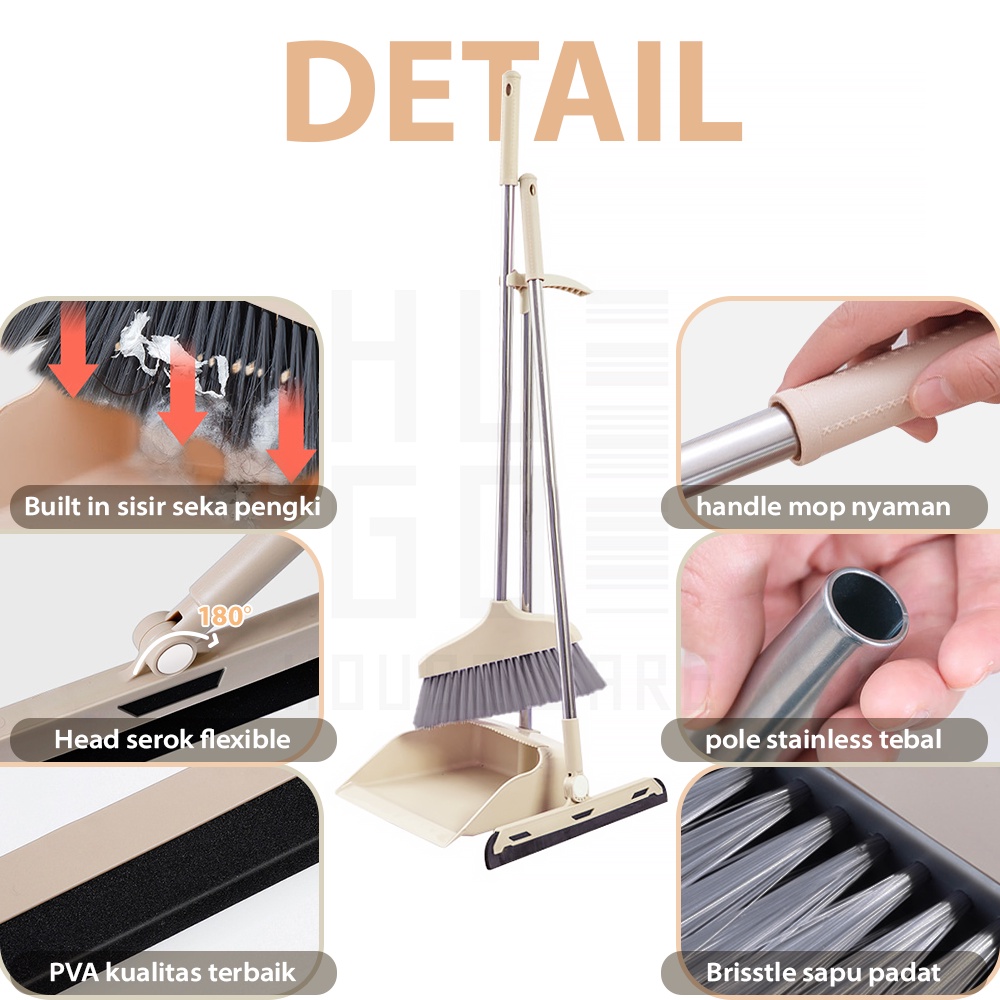 HUGO Sapu Lantai 3 in 1 Broom Set Alat Pembersih Lantai Sapu Pengki Serokan Air