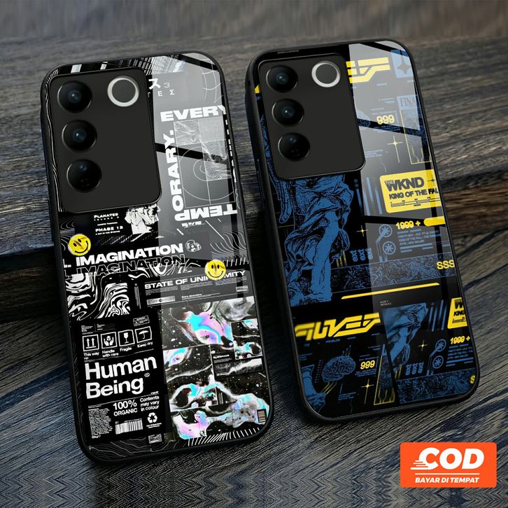 ( HARGA PROMO ) G195 Softcase Kaca Glass Case V29 V27 V27E Y27 Y78 Y22 Y17S Y36 Y35 Y16 T1 5G T1 PRO 5G Y75 Y15S Y01 Y33