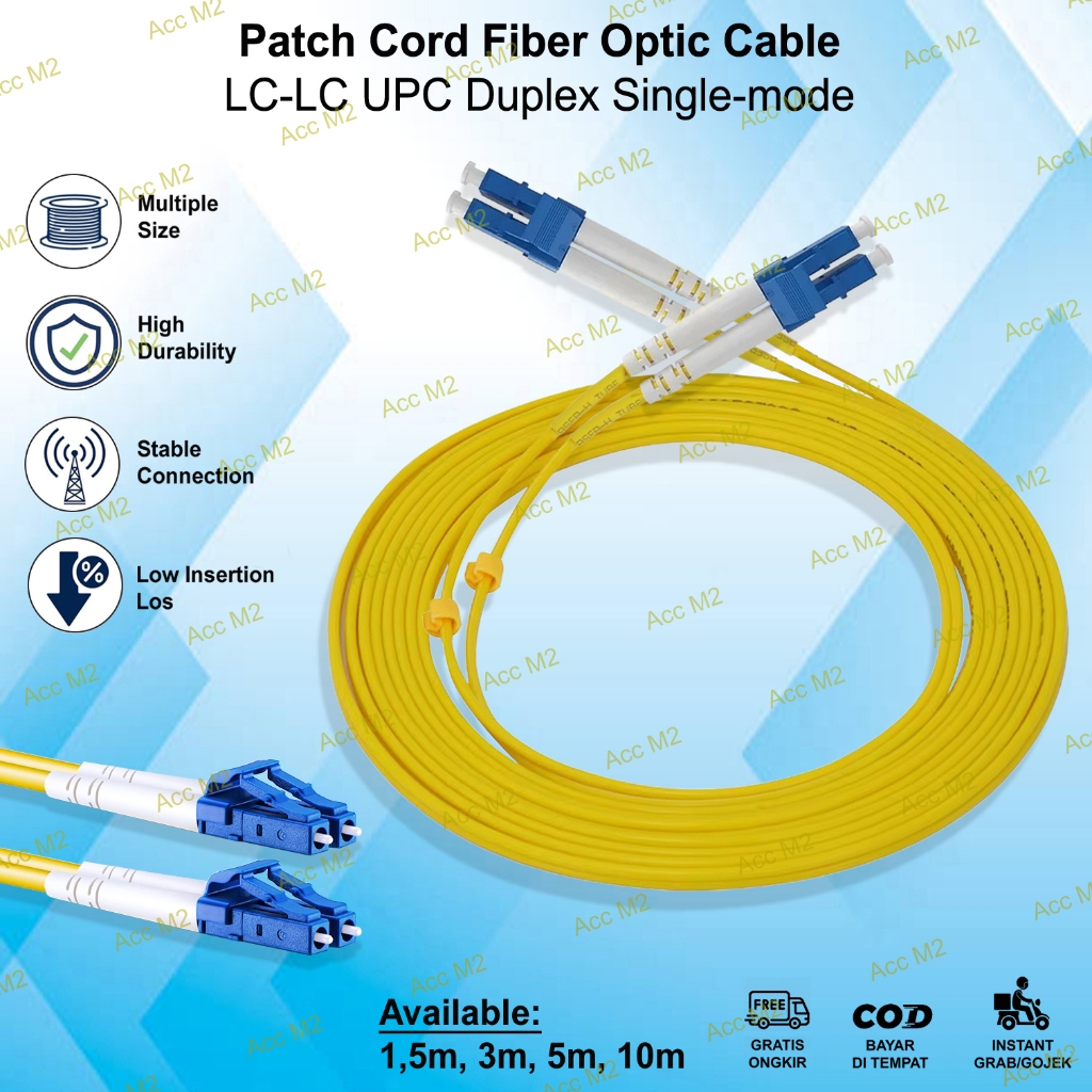 Kabel Fiber Optic Patchcord Duplex LC-LC UPC Single Mode 1.5m, 3m, 5m, 10m
