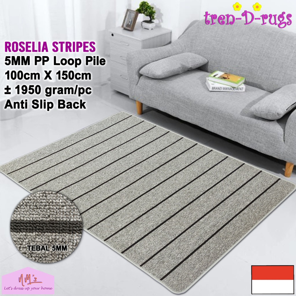 Karpet Permadani Stripes Garis Line Alas Lantai Motif Salur Anti Slip Ukuran 100x150cm Roselia Stripe Series
