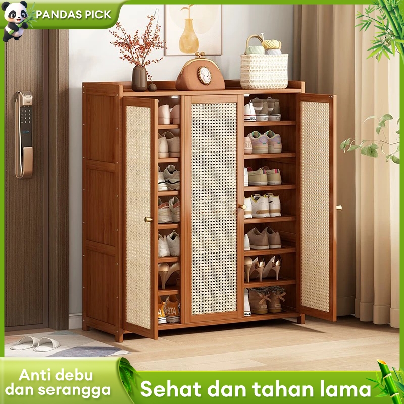 [Star]Lemari Sepatu Tertutup bambu Box Sepatu Rak Sepatu Minimalis Lemari Sepatu Rotan Jaring Bernapas