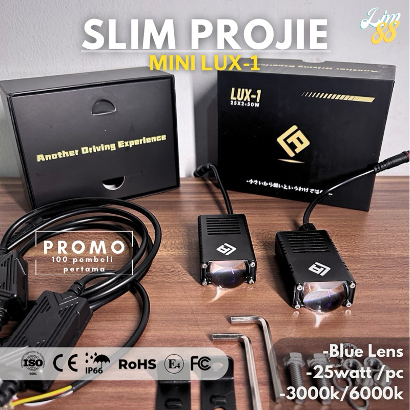 Slim Mini Projie LUX-1 Blue Lens Lampu Tembak Mobil Motor LED