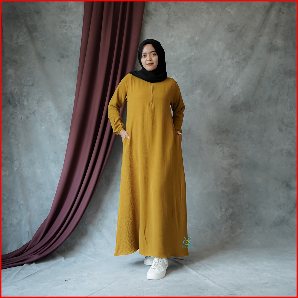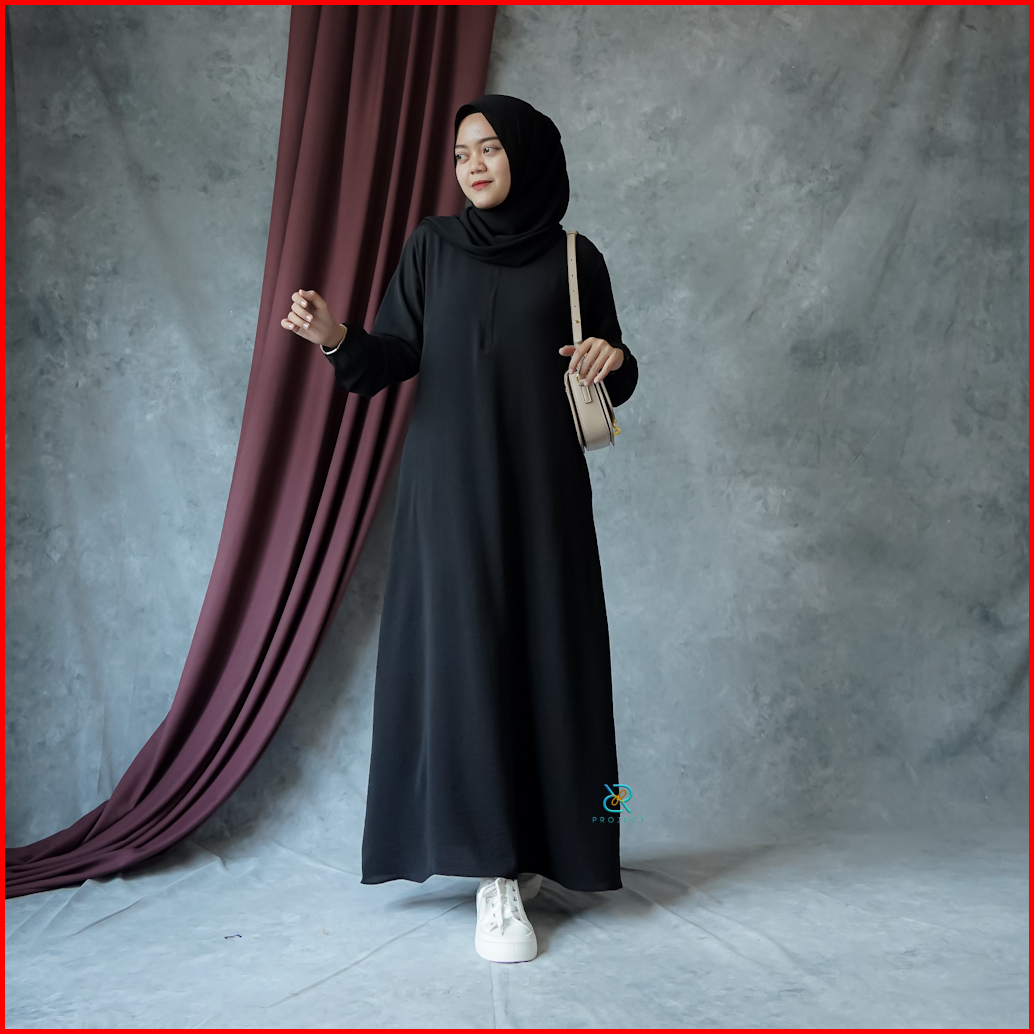 Rhino Black Gamis Crinkle Airflow Premium Gamis Polos Stylish