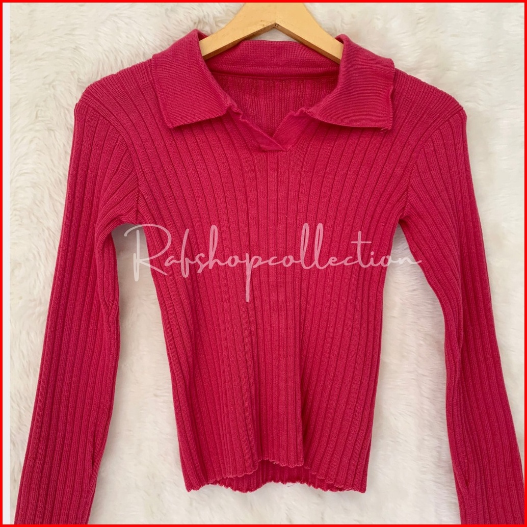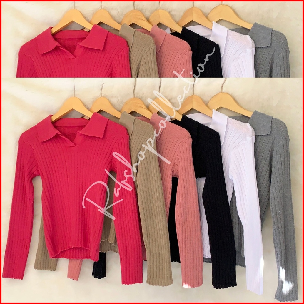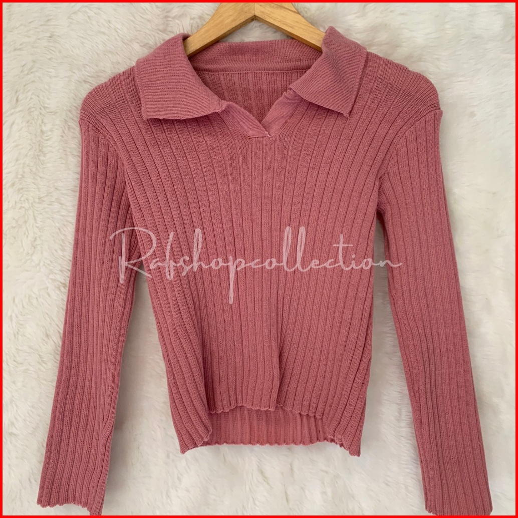 Alena Long Sleeve Polo Atasan Wanita Atasan Rajut