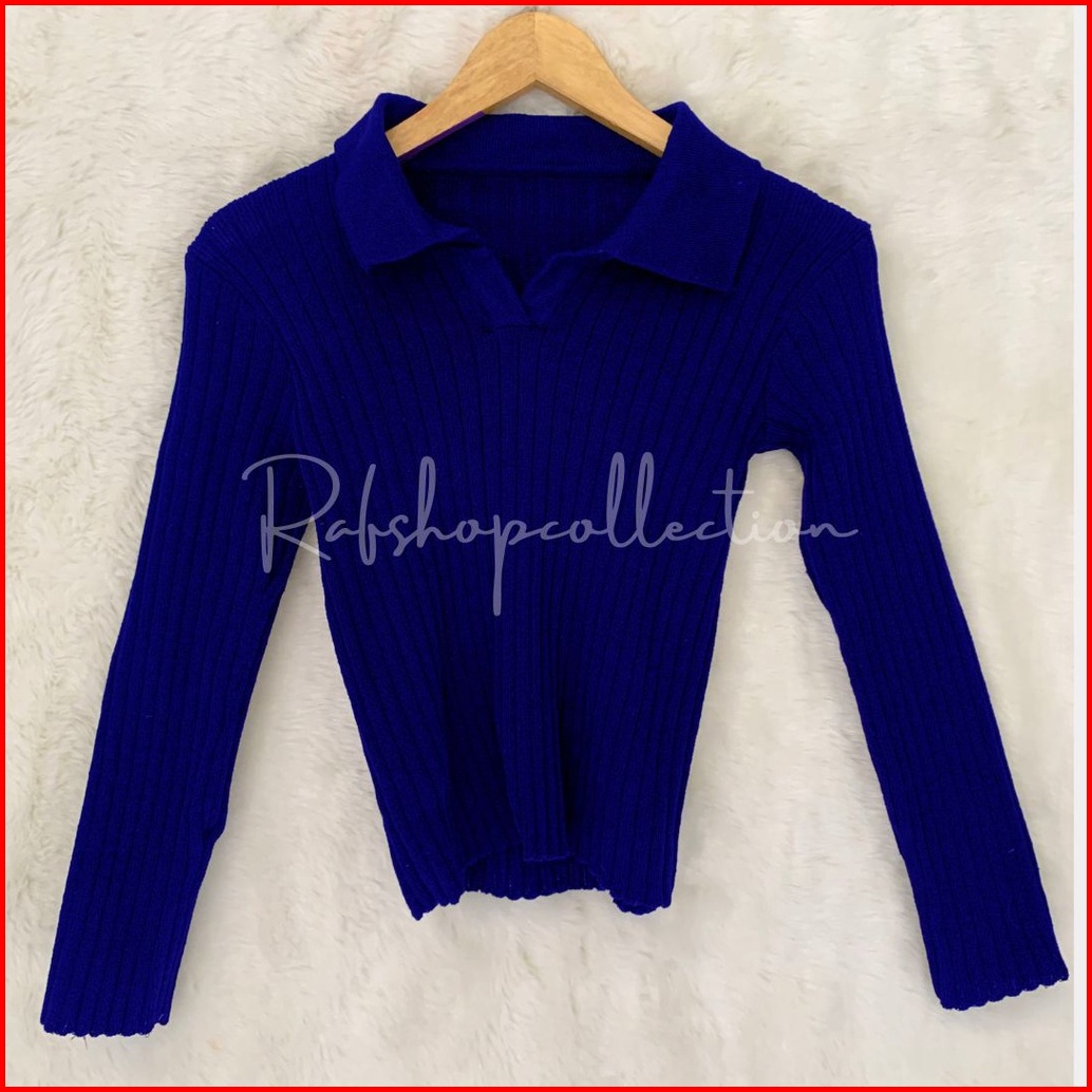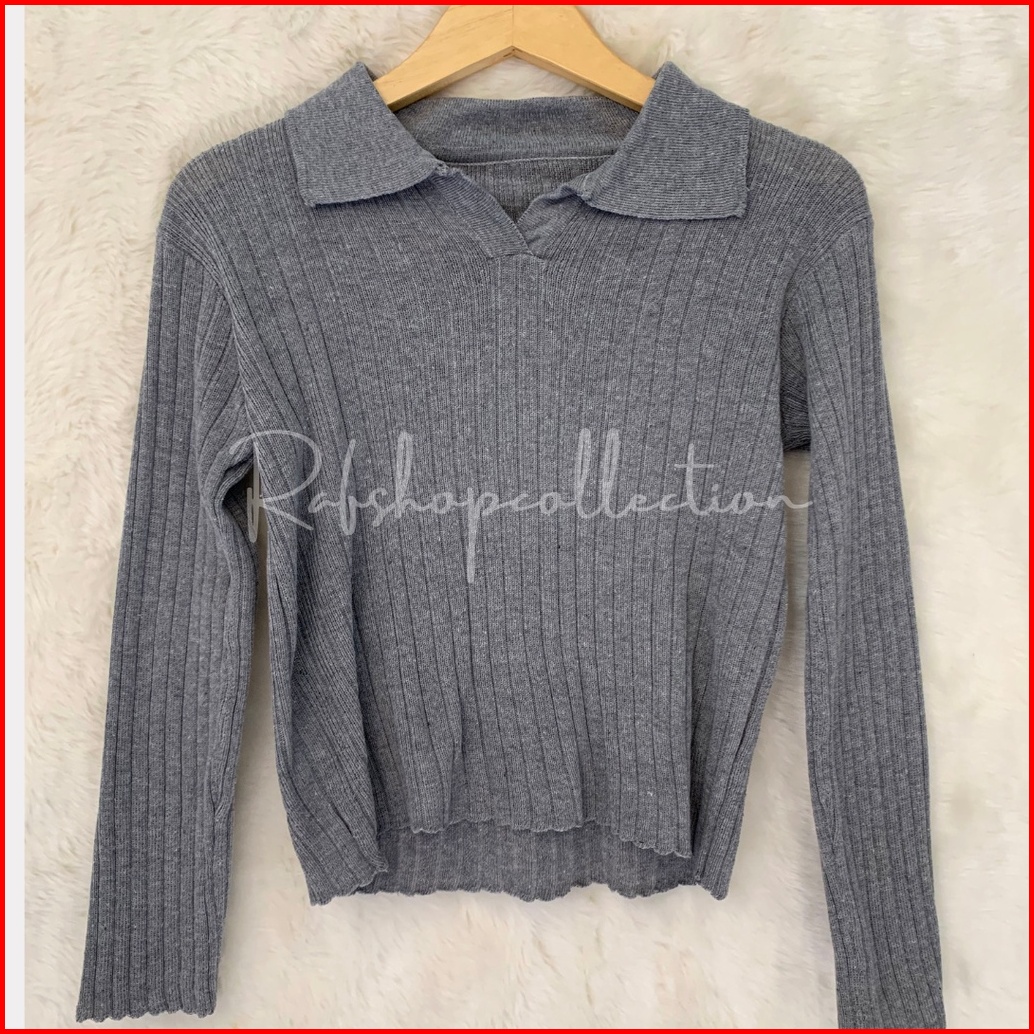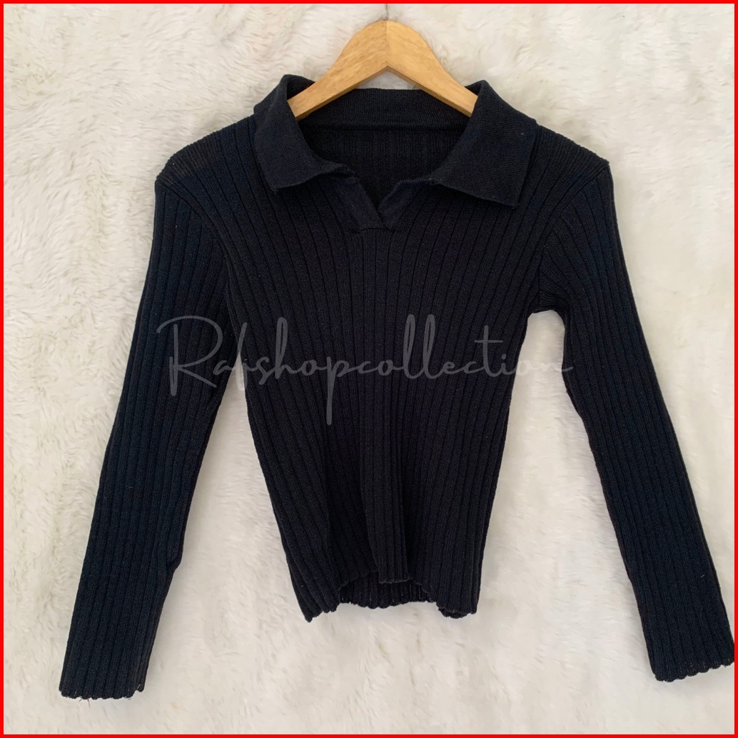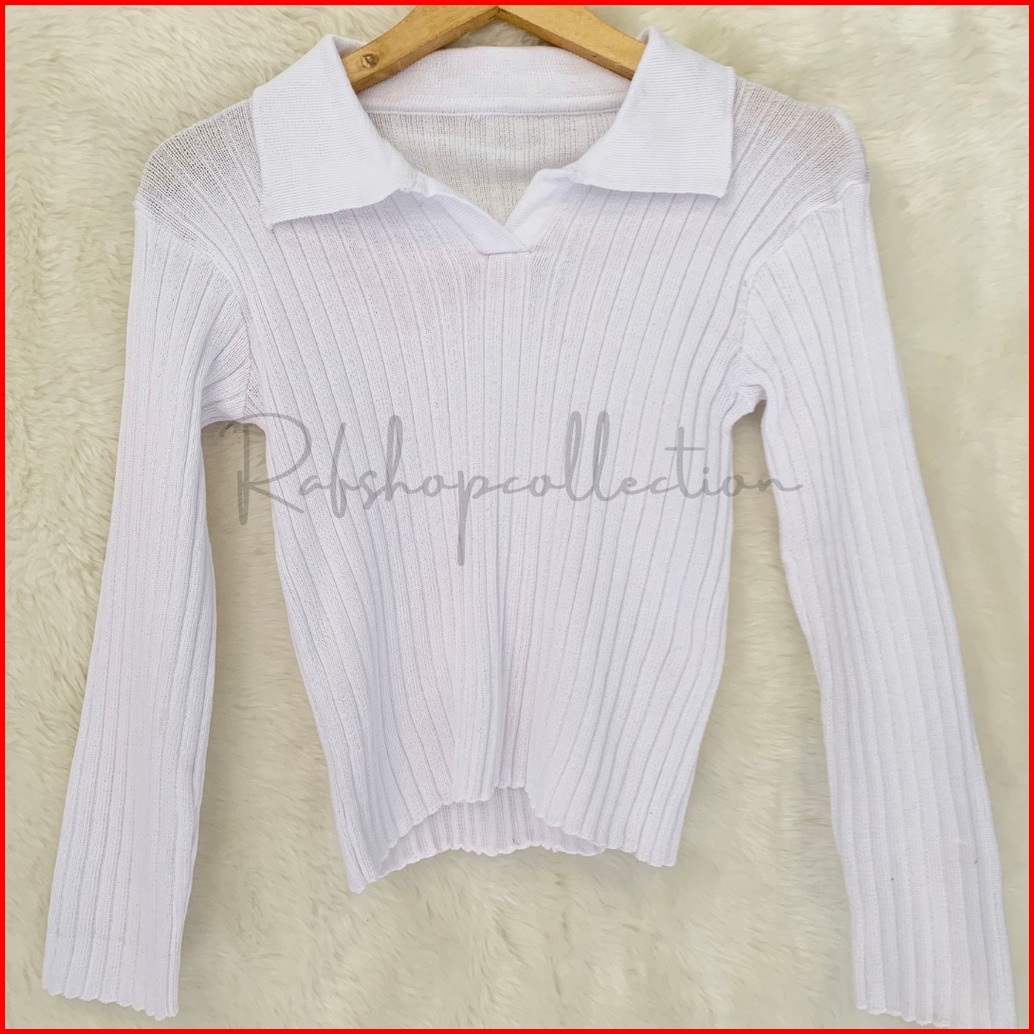 Alena Long Sleeve Polo Atasan Wanita Atasan Rajut