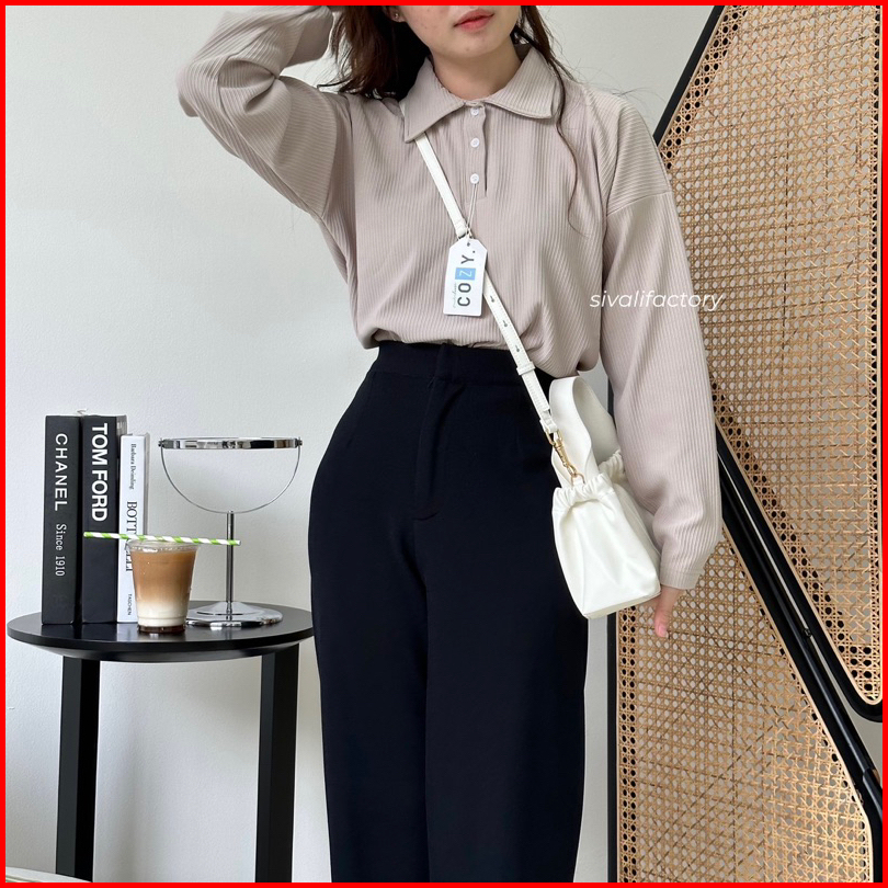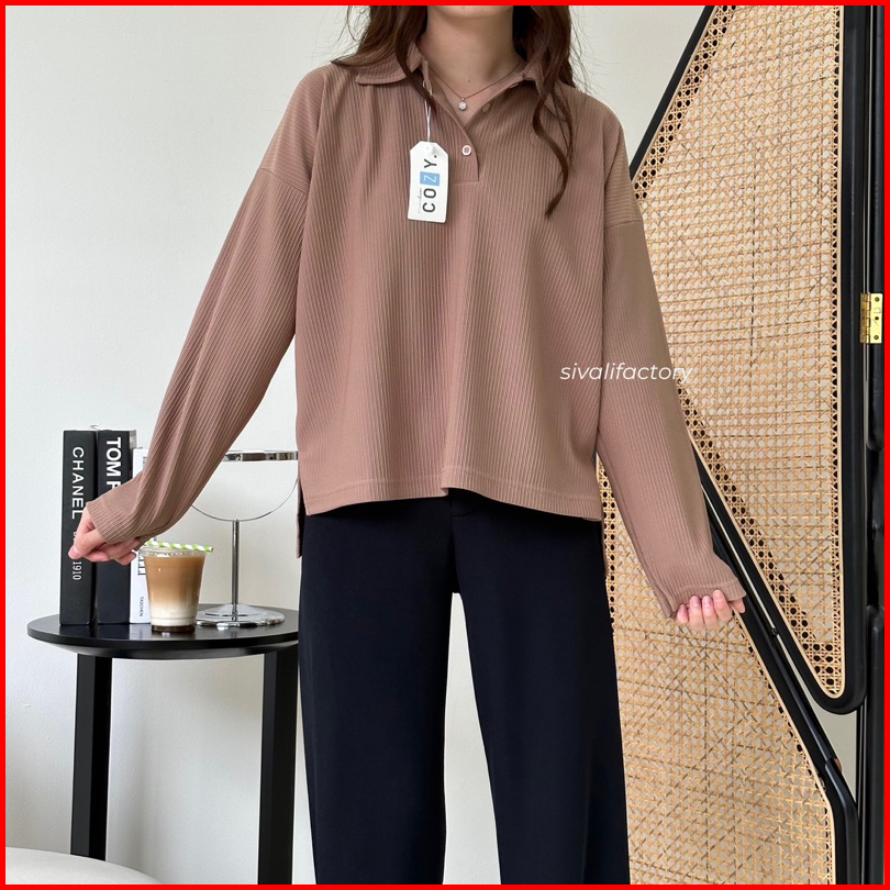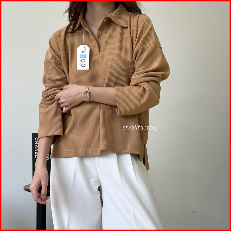Sivali Rumi Top 7733 Polo Shirt Atasan Wanita Longsleeve Shirt Lengan Panjang
