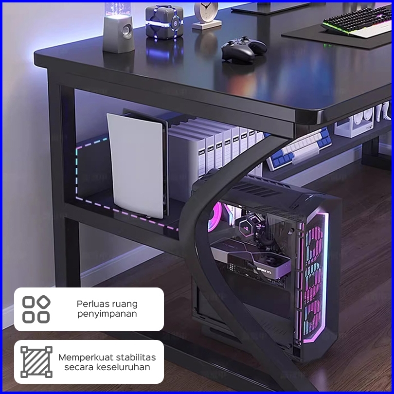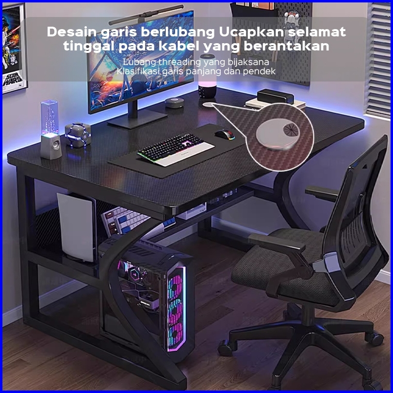 Kuca Fiber Karbon Meja Gaming Meja Komputer Minimalis Modern Meja Laptop Meja Belajar Hitam Meja Kantor Garansi Lima Tah