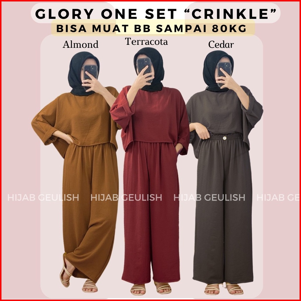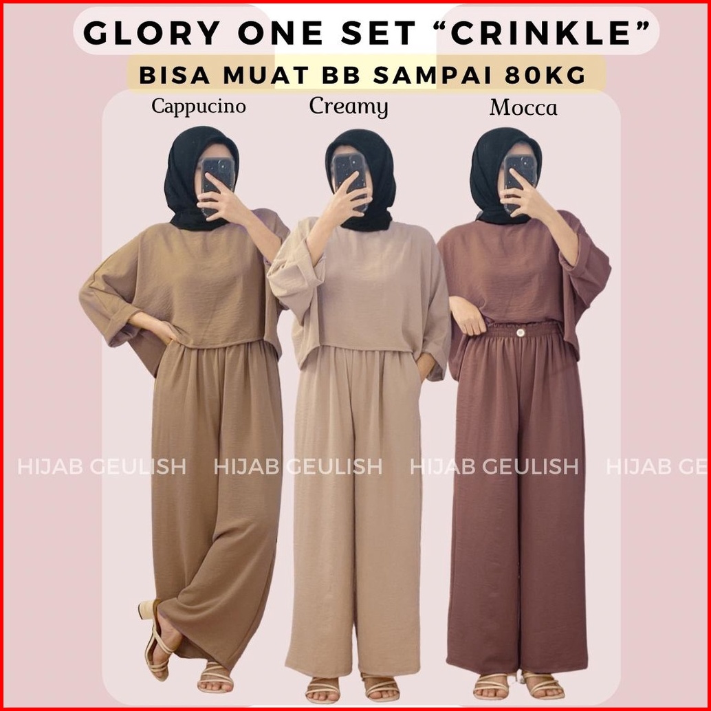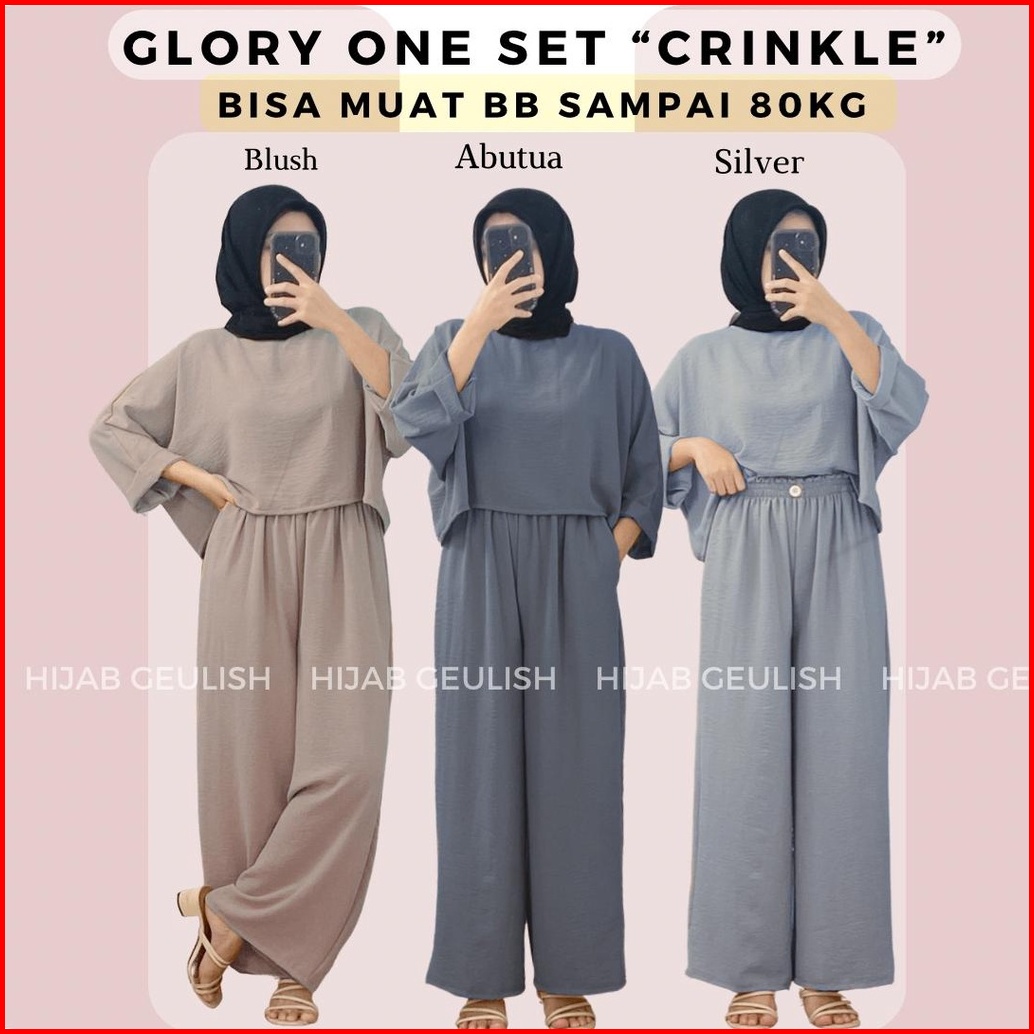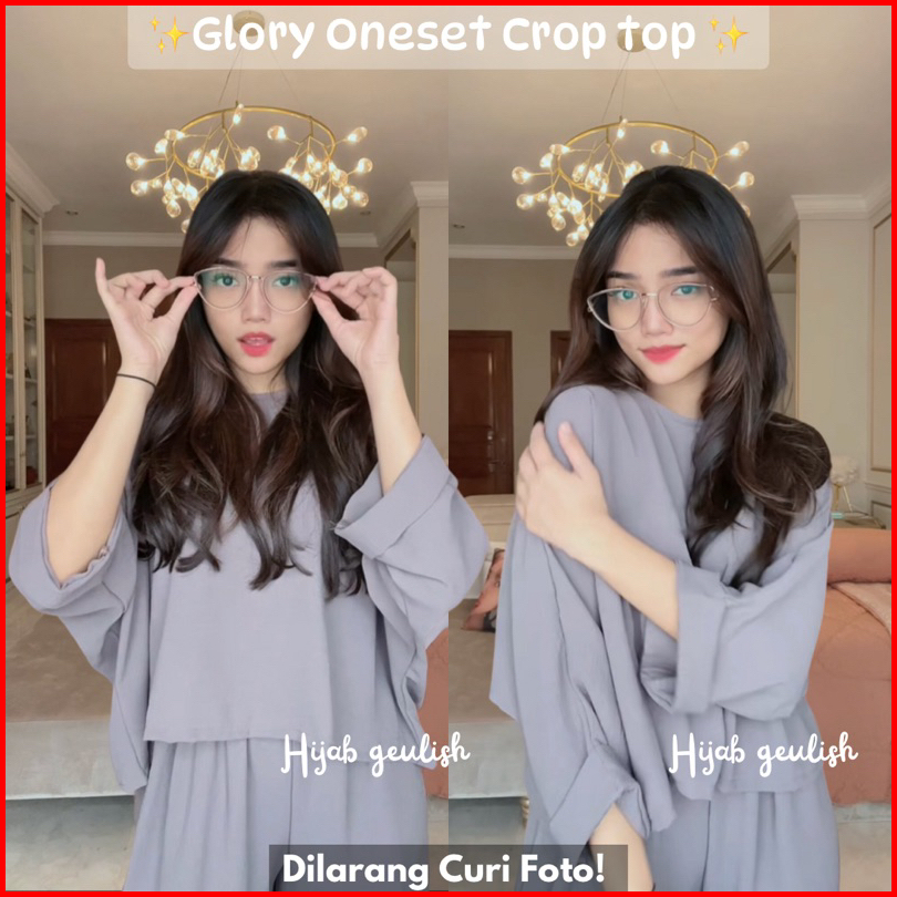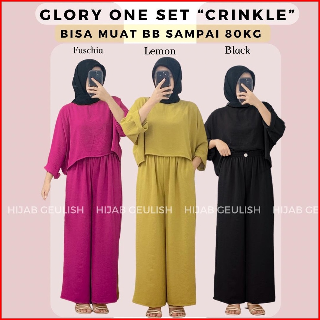 Glory One Set Crop Top Crinkle Setelan Wanita Crinkle Murah