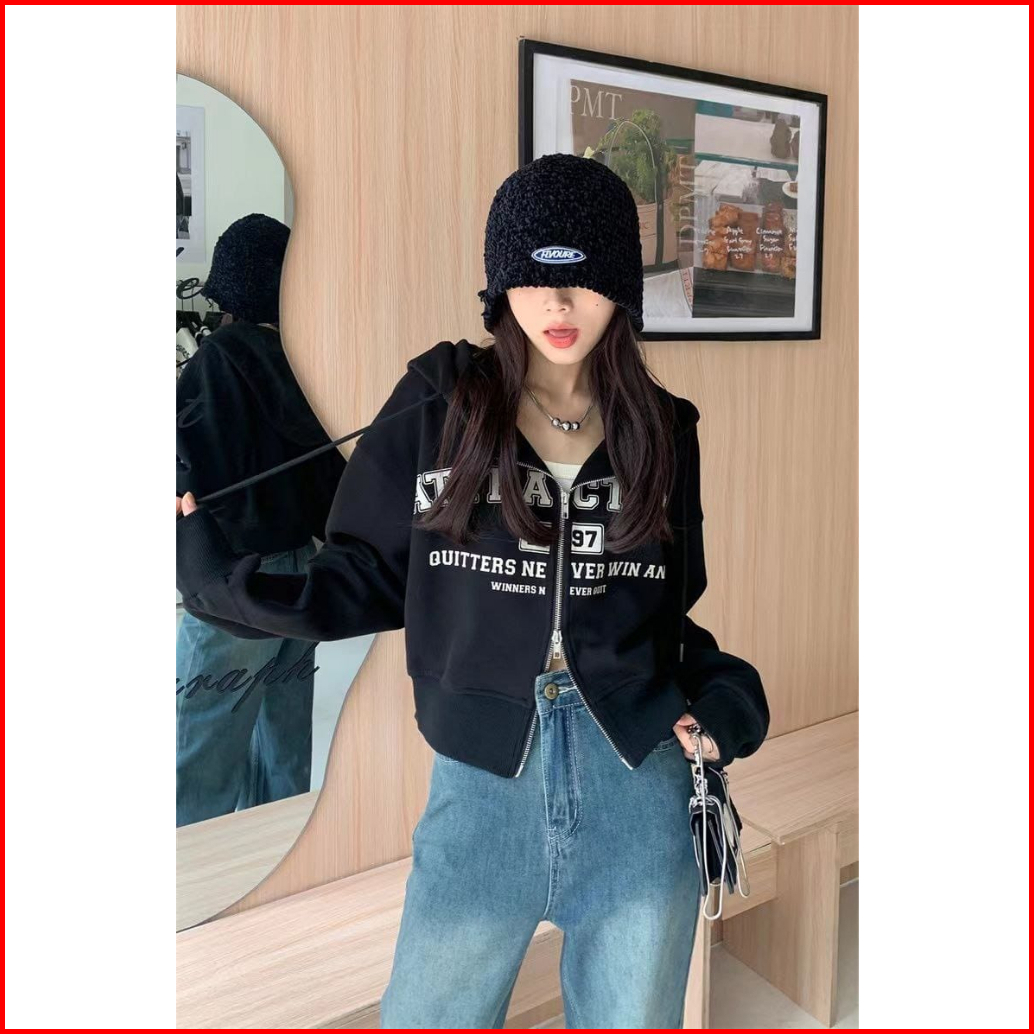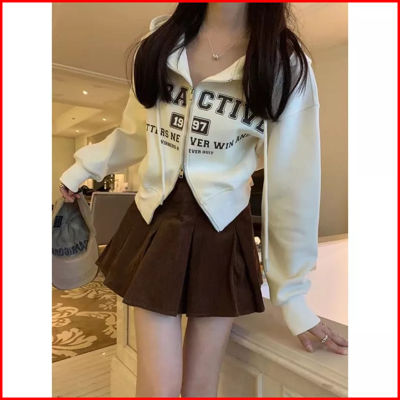 Atractive Hoodie Ziper Wanita Oversize Sweater Jaket Double Ziper Kekinian Korean Style