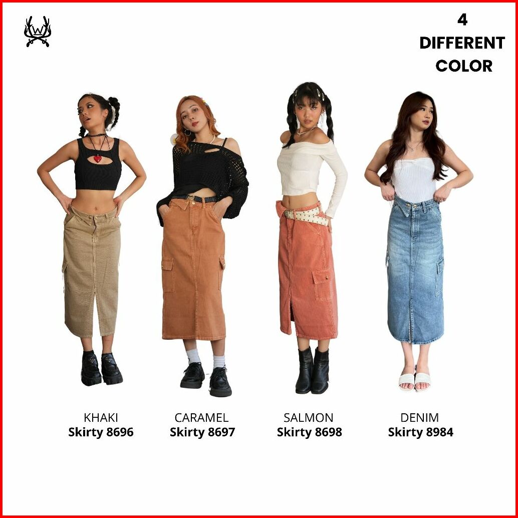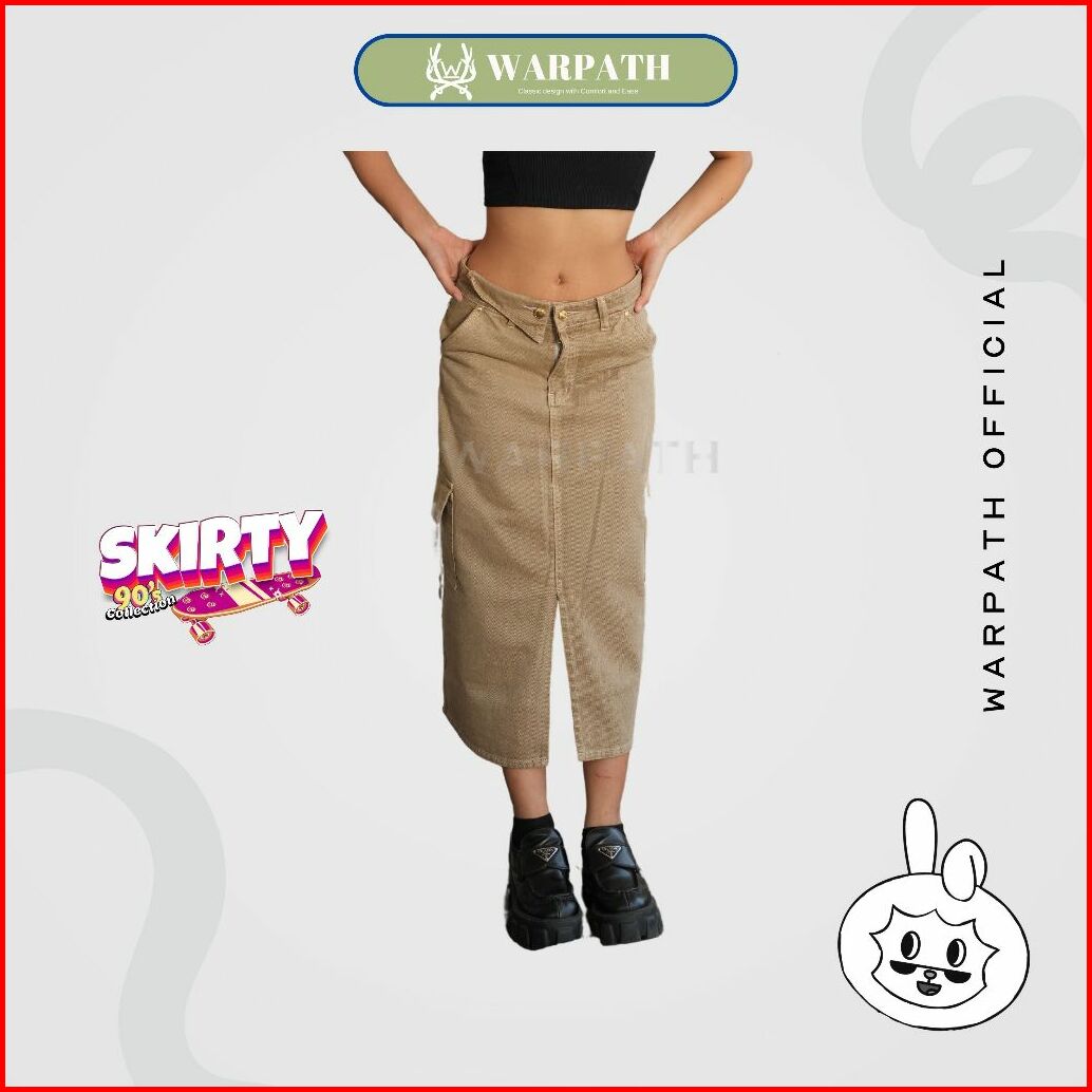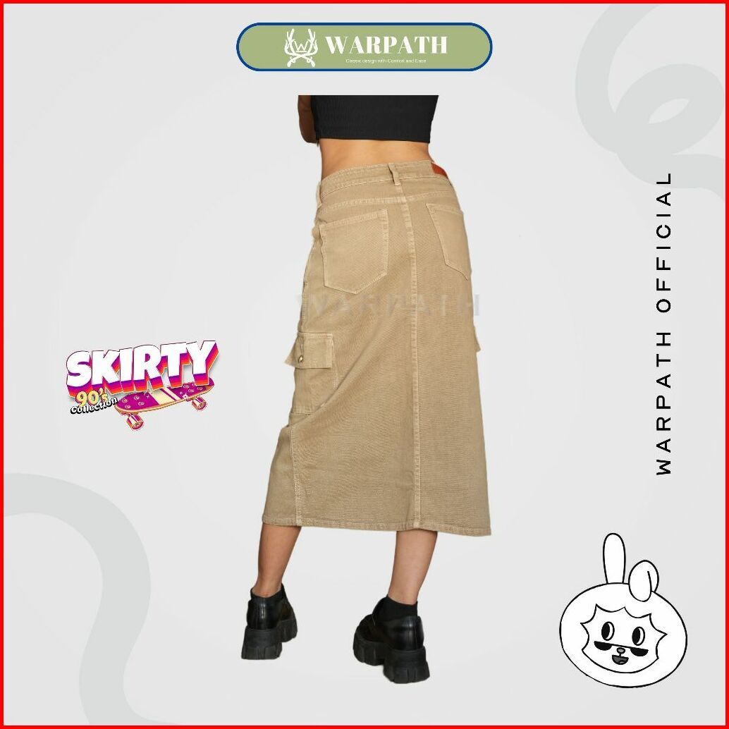 Warpath - Rok Jeans Cargo Highwaist Skirty 8696 Midi Skirt Rok Denim Wanita Khaki Non Stretch