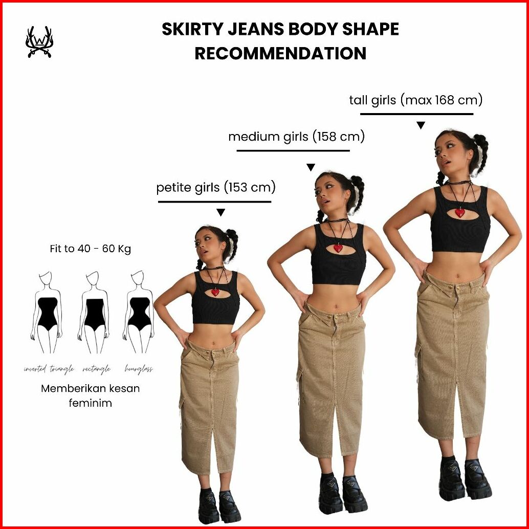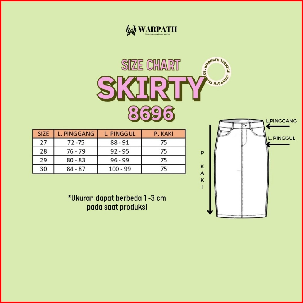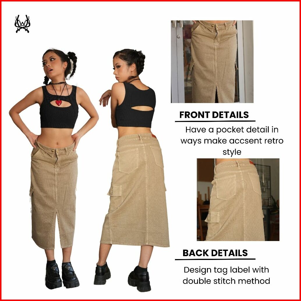 Warpath - Rok Jeans Cargo Highwaist Skirty 8696 Midi Skirt Rok Denim Wanita Khaki Non Stretch