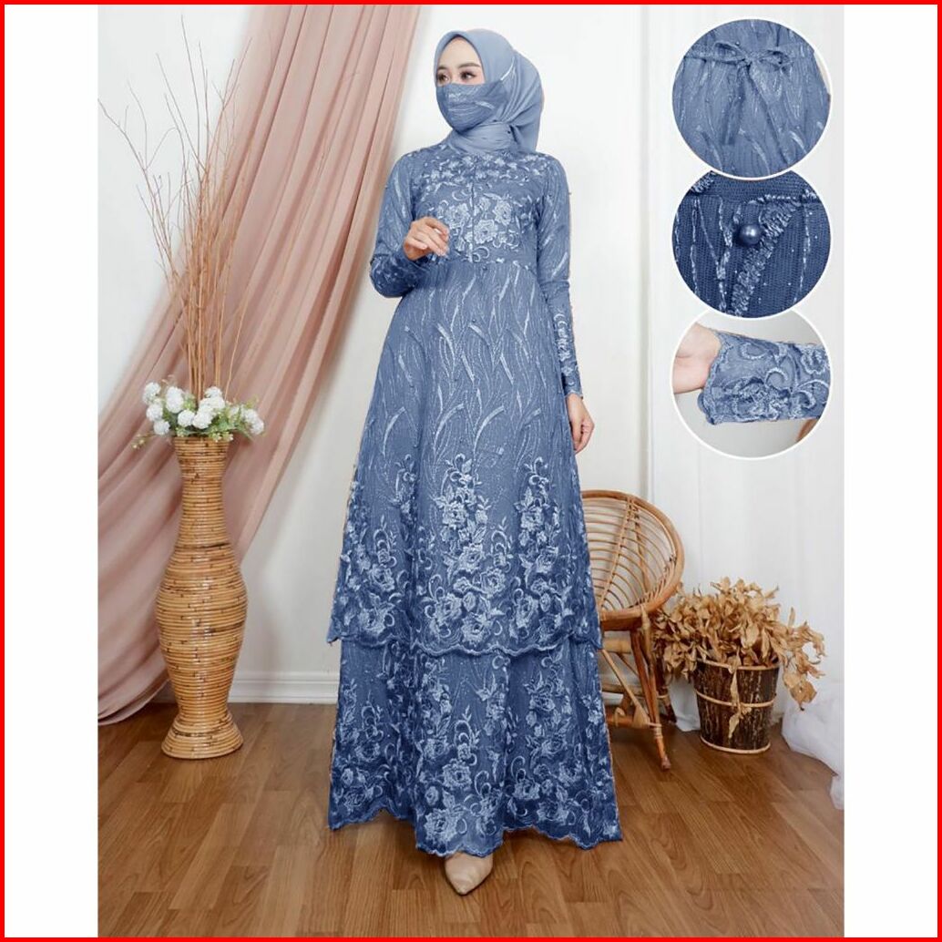 Maxi Vira M L Xl Xxl Xxxl Gamis Brukat Dress Susun Full Brukat Busui Friendly Gamis Pesta Kondangan Bridesmaid Tile Mewa