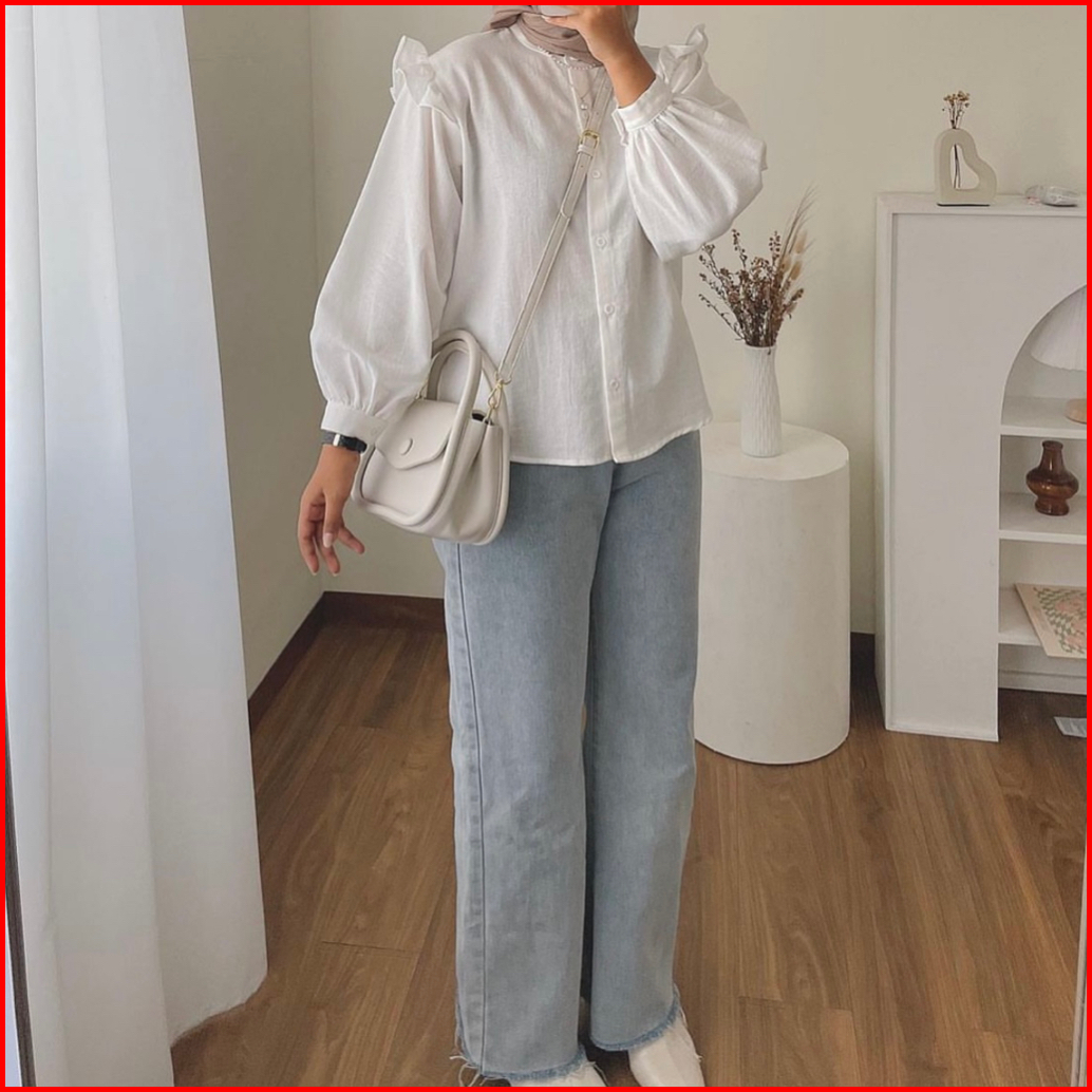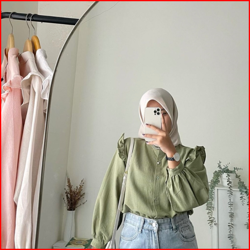 Yurim Blouse - Kemeja Wanita Formal - Atasan Blouse Wanita - Blouse Wanita Cute Ruffle - Blouse Wanita Linen Premium