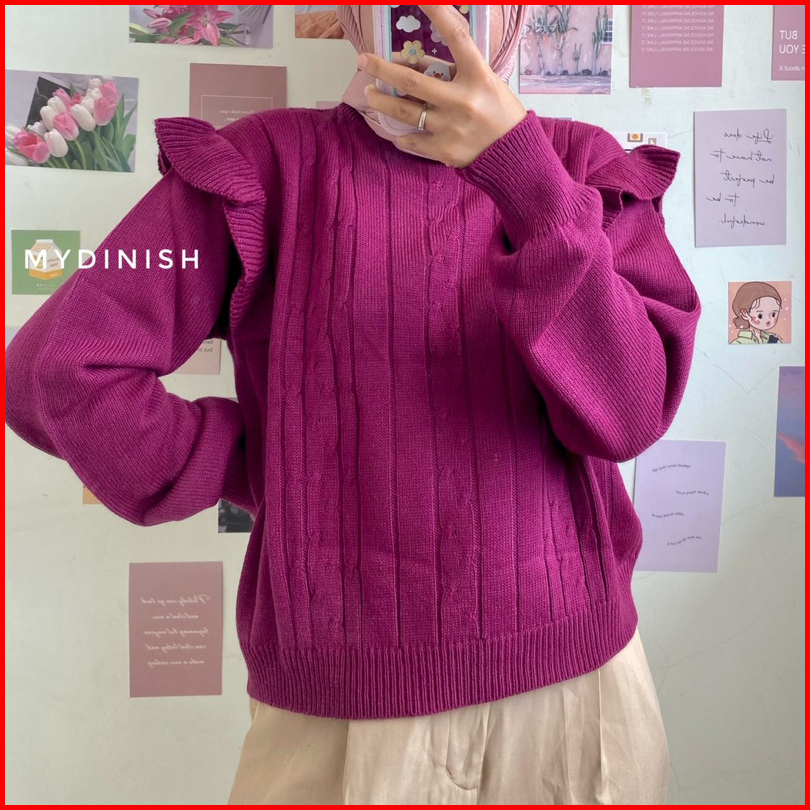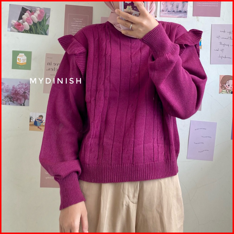 Fatira Ruffle Blouse - Atasan Rajut Wanita Motif Kriwil Kekinian