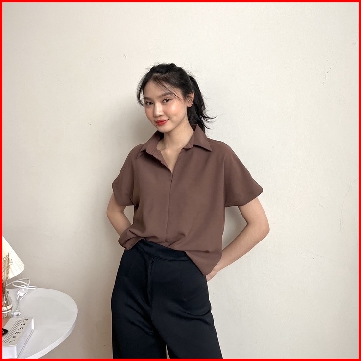 Kyuto Basic Top Lengan Pendek - Blouse Wanita - Casual Top - Atasan Kekinian - Baju Atasan Wanita Terbaru - Korean Style