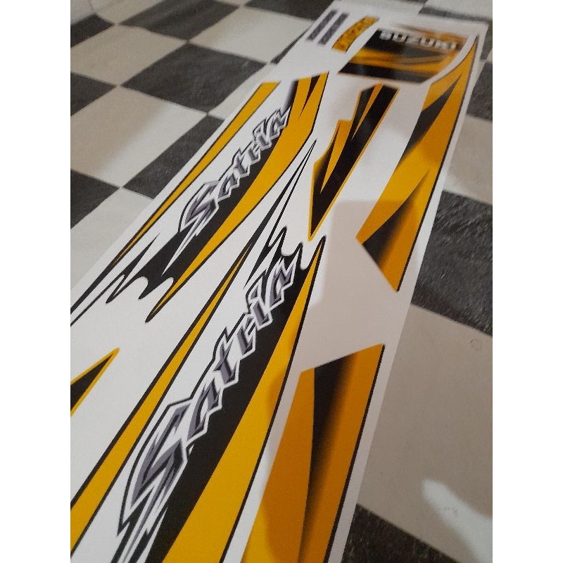 sticker striping satria hiu 2tak variasi transparan maxdeca laminasi boleh riquest