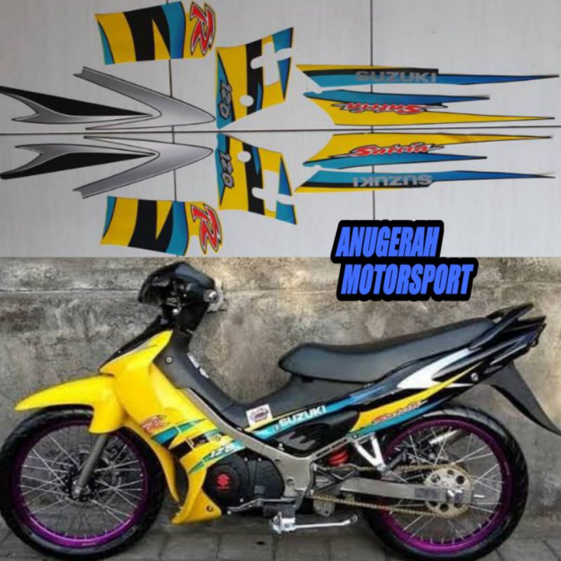 striping / sticker lis body suzuki Satria 2 tak hiu kuning hitam