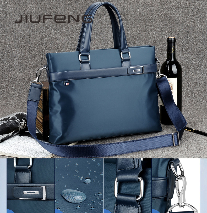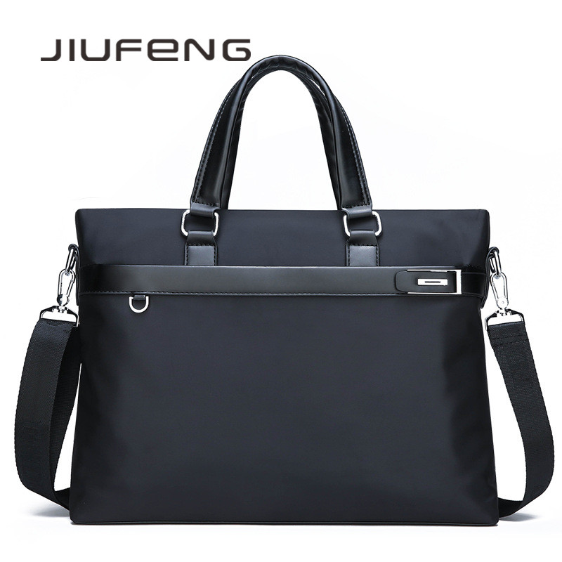 JIUFENG Tas Bahu Pria Bisnis Kanvas Tahan Air Satu Tas Kantor Tas Komputer 14 Inci Ransel Dokumen