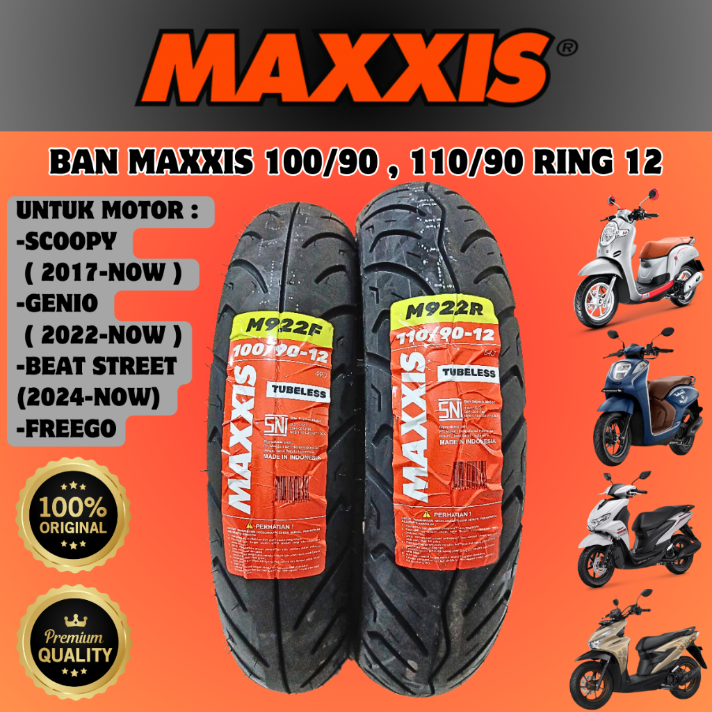BAN MOTOR SCOOPY NEW , SCOOPY DONAT , GENIO NEW RING 12 , FREEGO ( 100 90 , 110 90 RING 12 ) MAXXIS