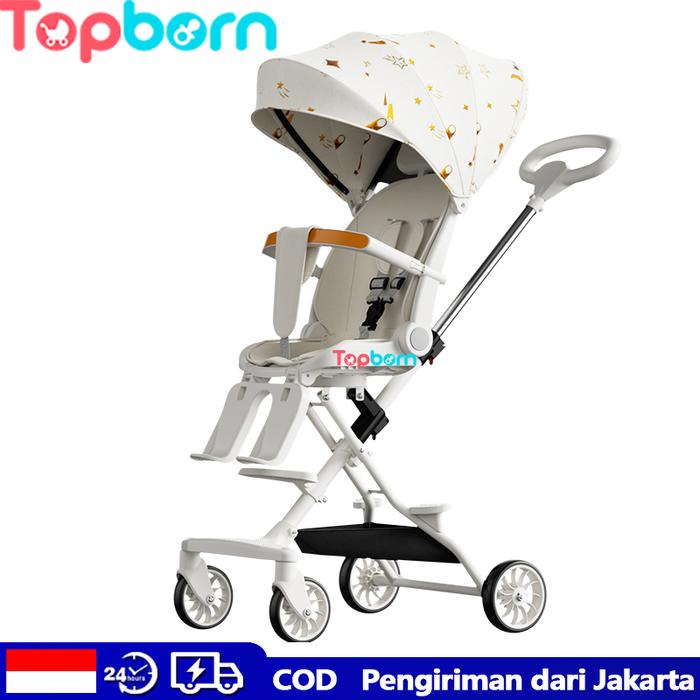 TOPBORN STROLLER KERETA BAYI DUA ARAH BISA DUDUK ATAU BERBARING KINERJA BIAYA TINGGI RODA STROLLER - ST02 HITAM