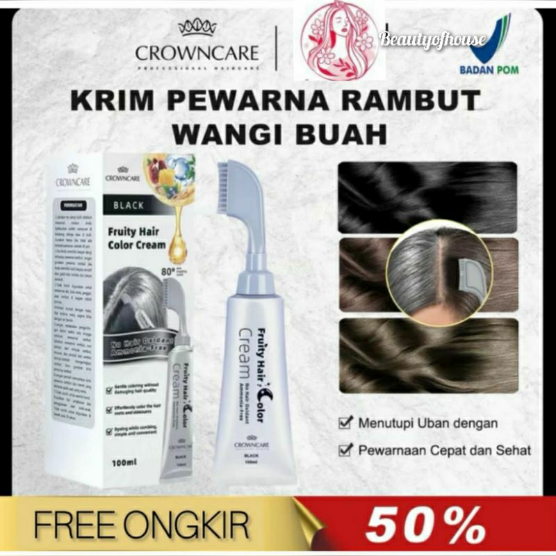 Crowncare Fruity Hair Color Black Krim Pewarna Rambut Wangi Buah Alami