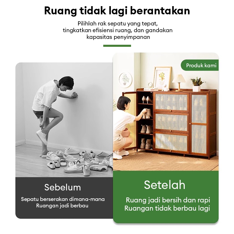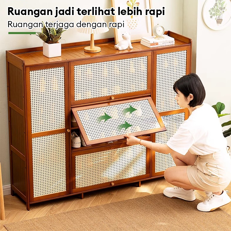 [Star]Lemari Sepatu Rak Sepatu Tertutup Rak Sepatu Rotan Jati Rak Sepatu Serbaguna Aesthetic