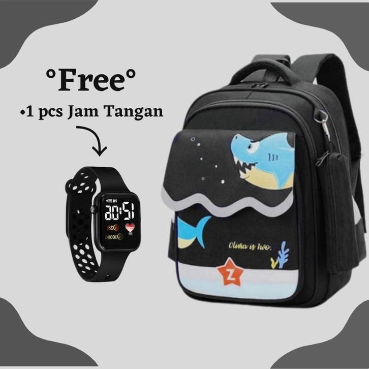 Tas Anak Ransel Sekolah Laki-laki Perempuan Sd Tk Smp Motif Kartun HIU