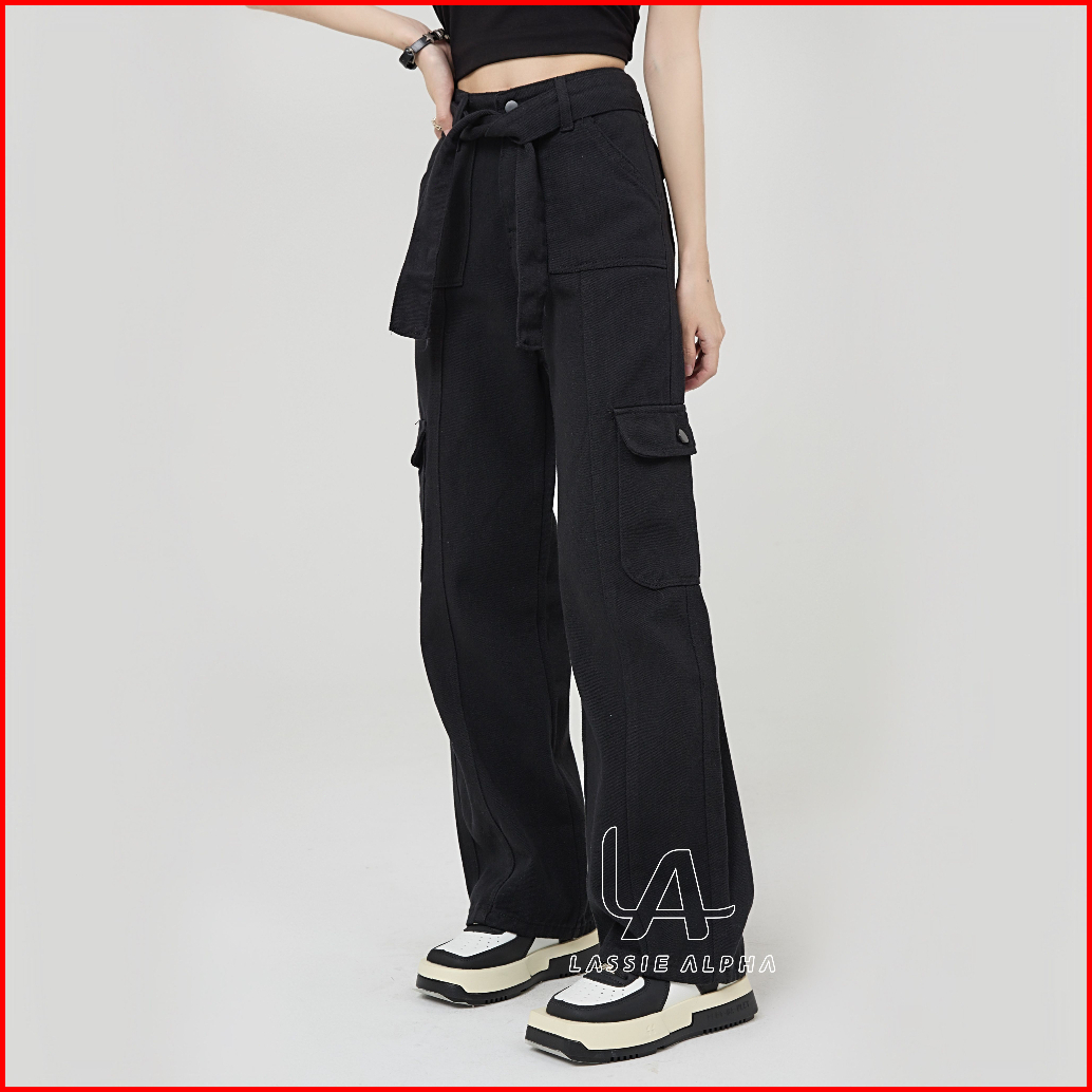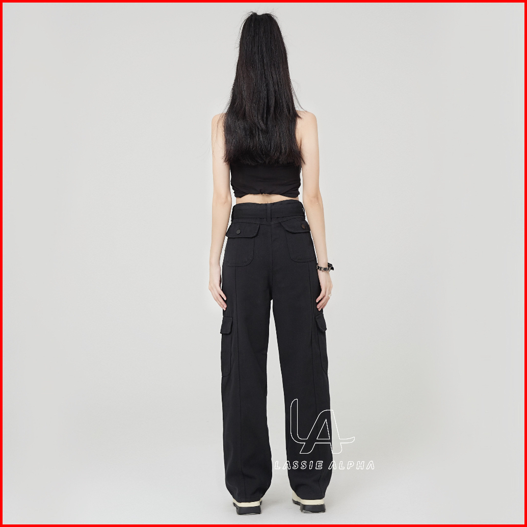 Lassie Alpha J42 Celana Cargo Jeans Wanita Celana Highwaist Kargo Pants Jeans Black Hw Celana Panjang Berpinggang Tinggi