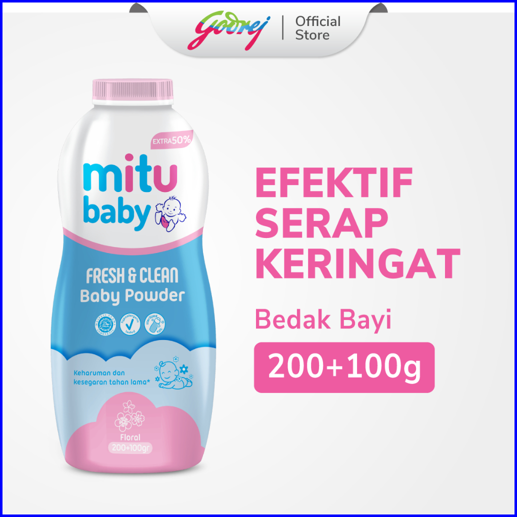 Mitu Baby Powder Fresh Clean Pink Floral 200 100 Gr - Bedak Bayi