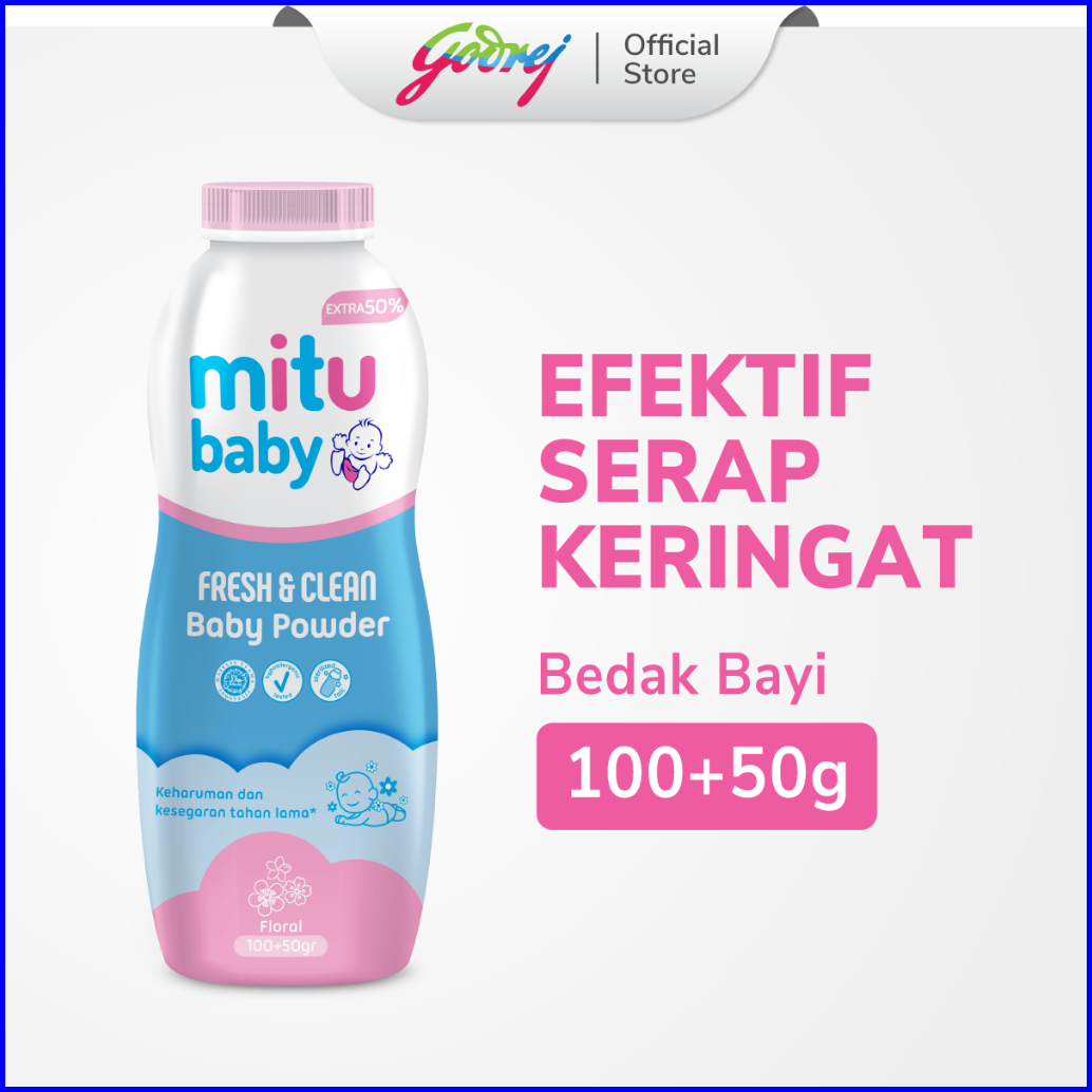 Mitu Baby Powder Fresh Clean Pink Floral 100 50 Gr - Bedak Bayi