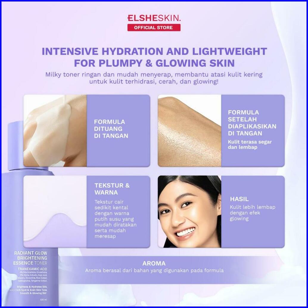 Elsheskin Radiant Glow Brightening Essence Toner 100ml - Skincare - Brightening Toner Cleanser Moisturizer Untuk Mencera