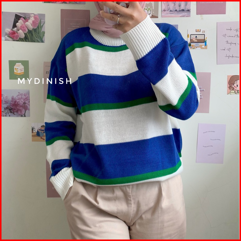Malika Sweater Rajut Motif Blaster Korean Style Kekinian