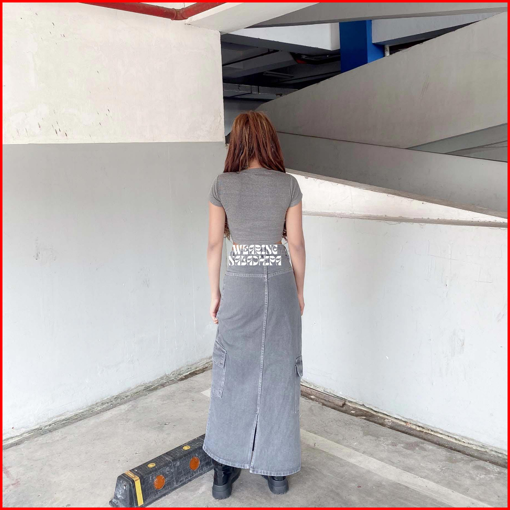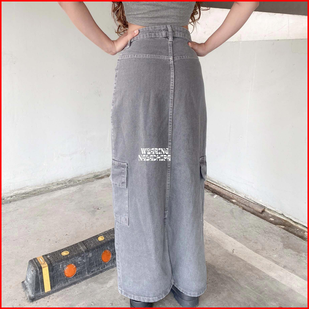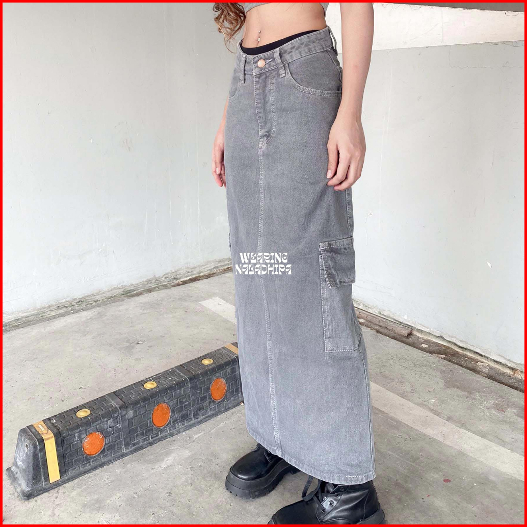 Tara Skirt Cargo Grey - Highwaist Cargo Jeans Rok Wanita