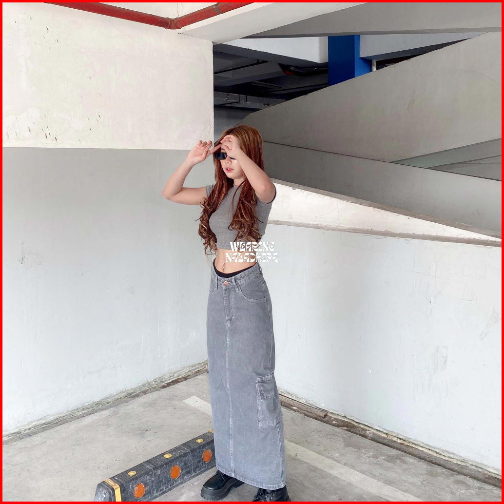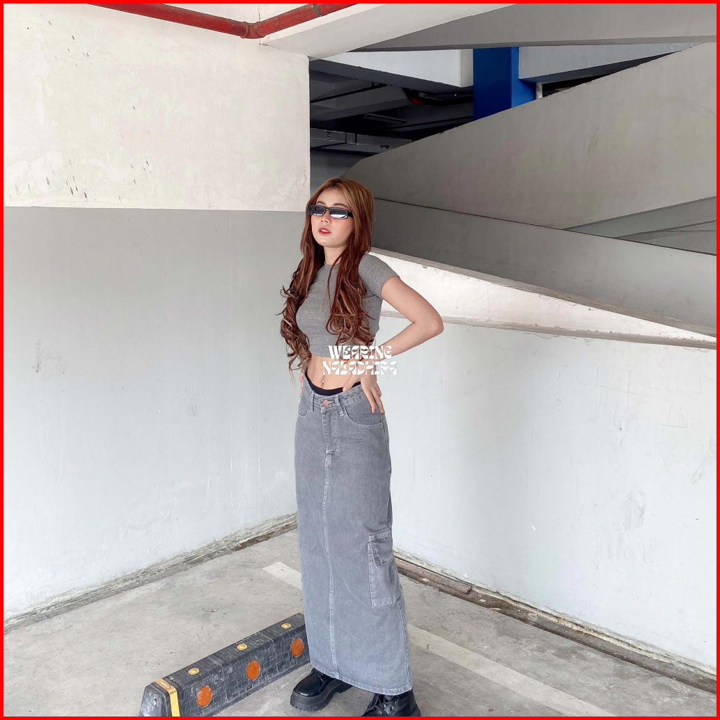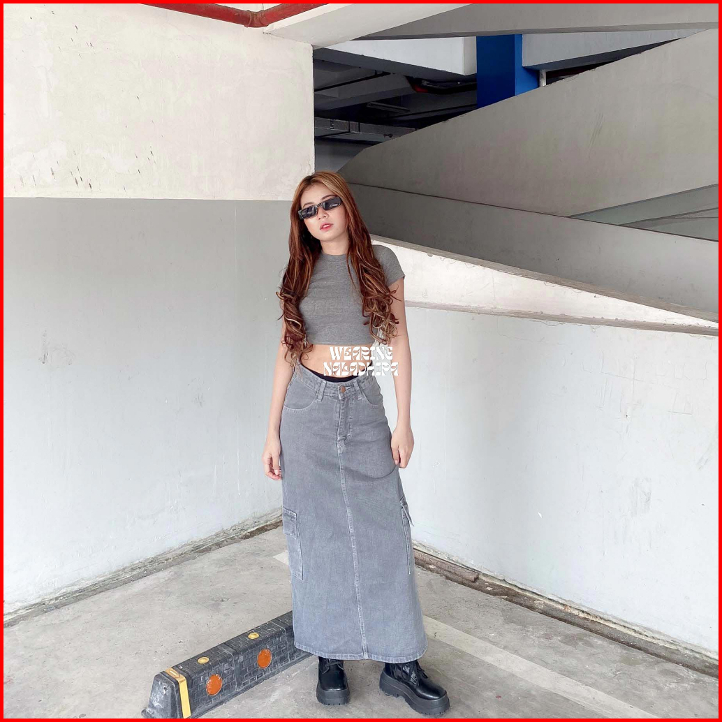 Tara Skirt Cargo Grey - Highwaist Cargo Jeans Rok Wanita