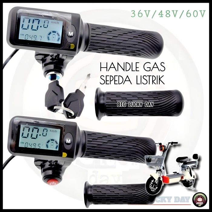 HANDLE GAS SEPEDA LISTRIK UNIVERSAL 36V/48V/60V HITAMLE THROTTLE LCD