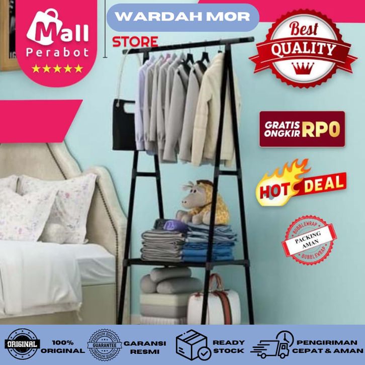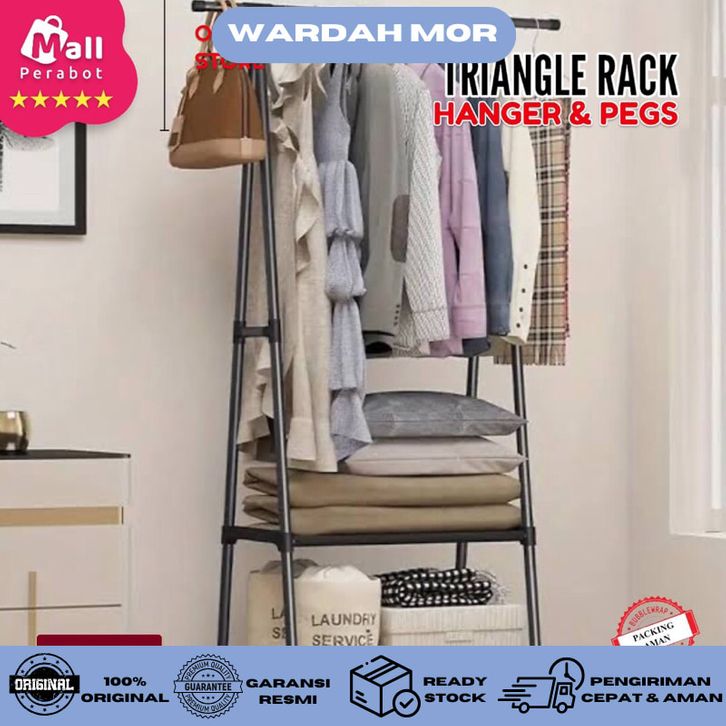 Mall Perabot Triangle Stand Hanger Coat Rack Gantungan Besi Berdiri Topi Baju Tas Gantung Jacket Rak Buku Serbaguna